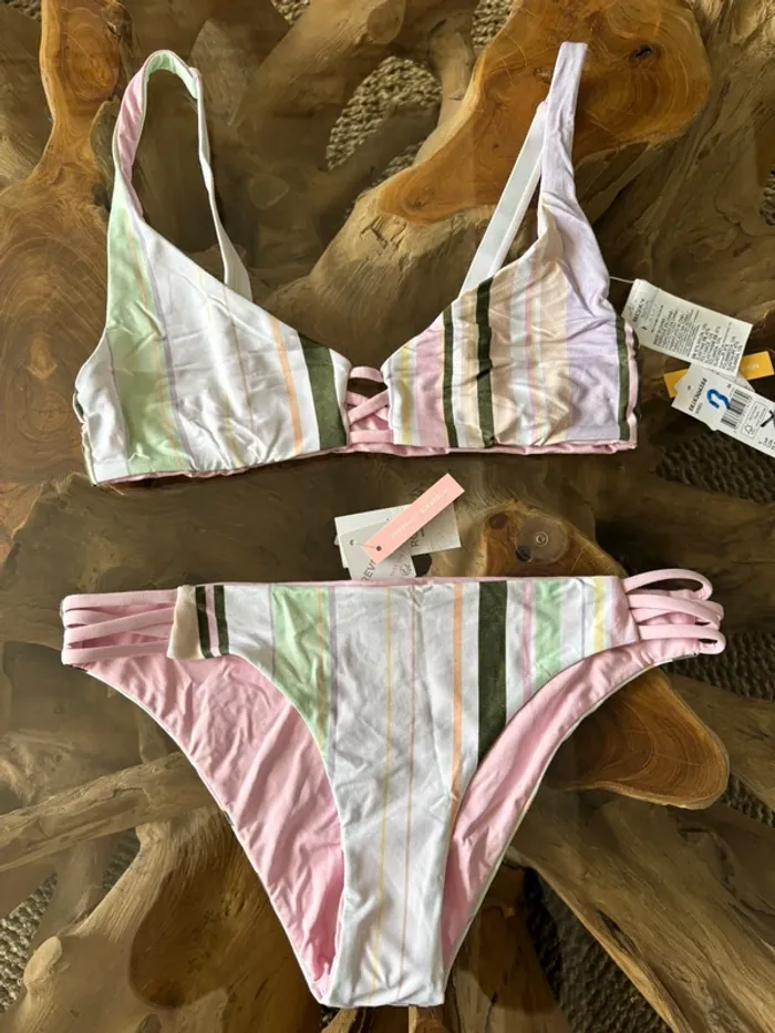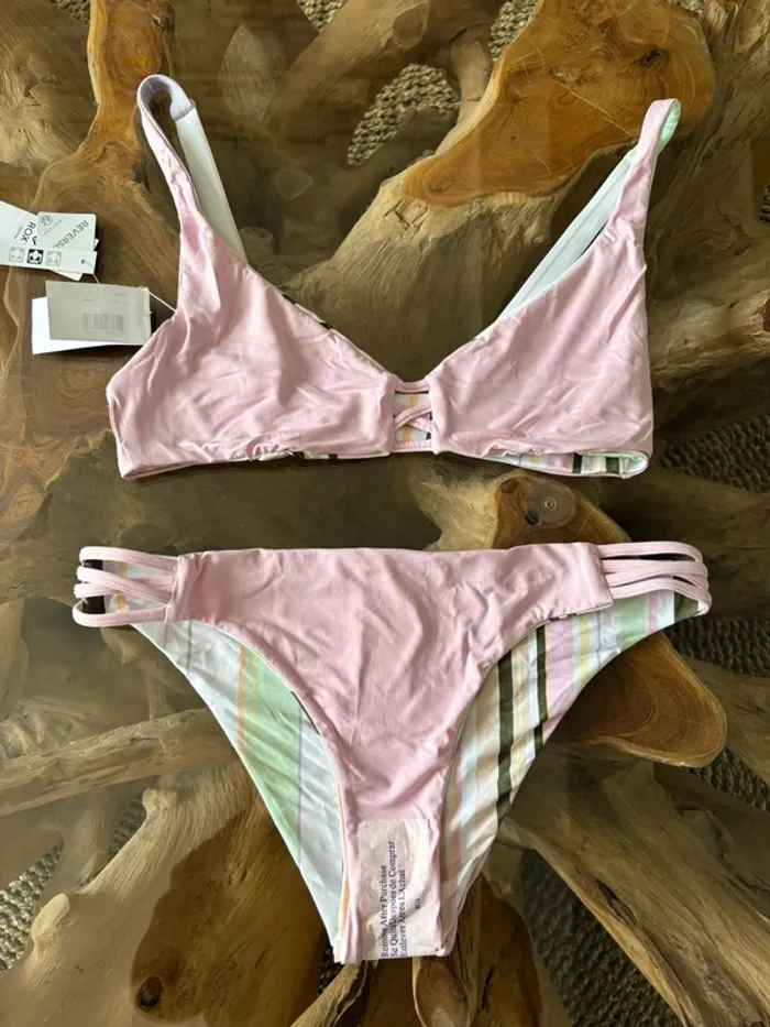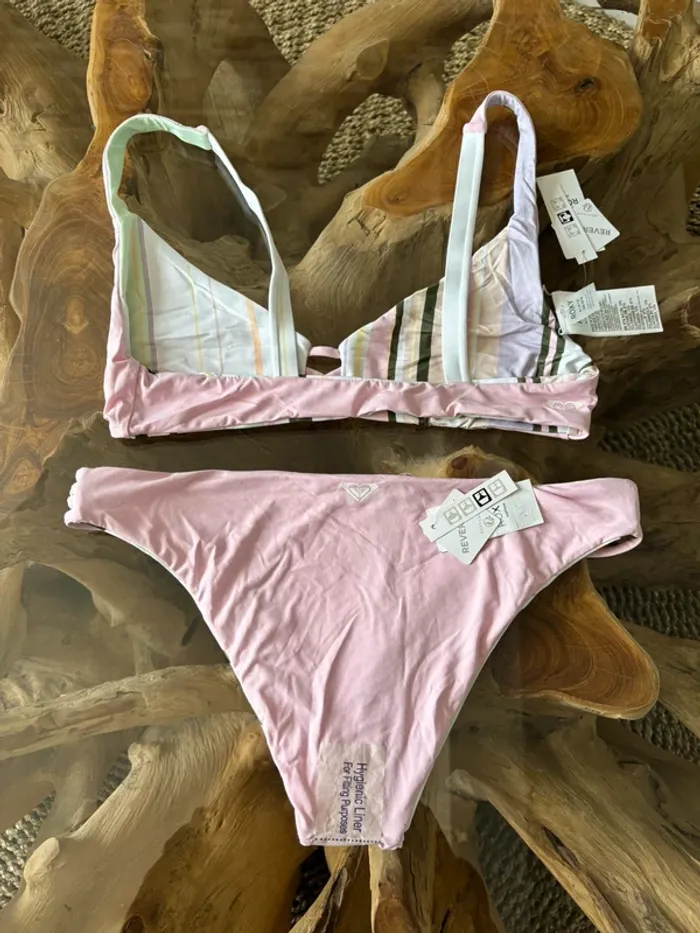 Maillot de bain 2 pièces Roxy Réversible : 1 côté uni rose clair et 1 côte à rayures Haut : sans coussinets Bas : moderate coverage Taille M Neuf avec étiquette. Prix neuf de l'ensemble : 79.98€ Possibilité de vendre les articles séparément (me contacter) N'hésitez pas à faire des lots ✨ réduction dès 2 articles (d'autres maillots de bain Roxy à vendre) Pour voir mes autres maillots de bain à vendre : #mdbludi2607 ✉️Pas de remise en main propre