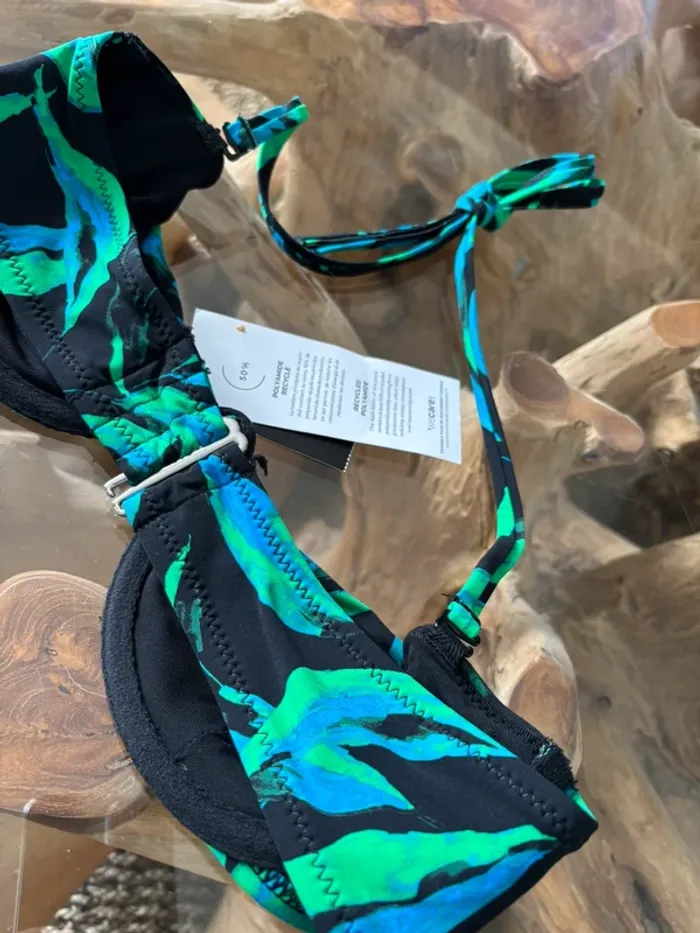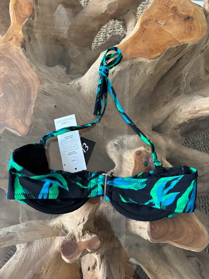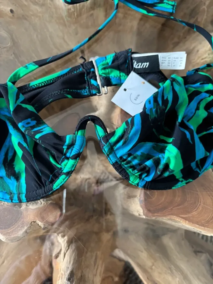 Haut de maillot de bain Etam Modèle Perry SC classique Green river Plusieurs positions pour le réglage dans le dos Réglable dans le cou avec les ficelles. Possibilité de le porter en bandeau sans les ficelles du cou. Armaturr/Baleine rigide sur toute la longueur Taille 85C Neuf avec étiquette N'hésitez pas à faire des lots ✨ réduction dès 2 articles (d'autres maillots de bain à vendre) Pour voir mes autres maillots de bain à vendre : #mdbludi2607 ✉️Pas de remise en main propre