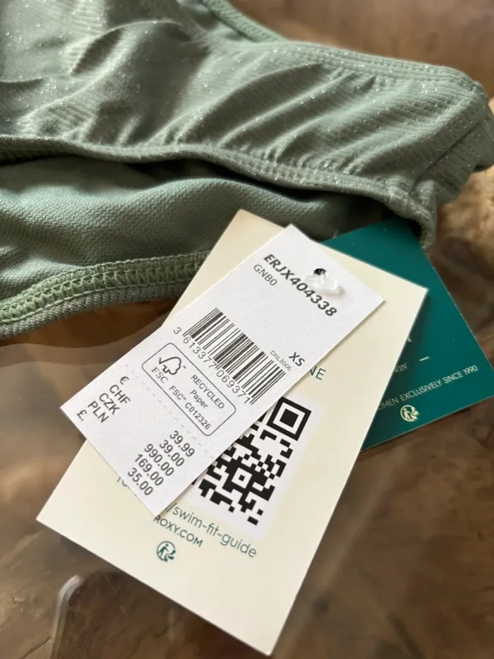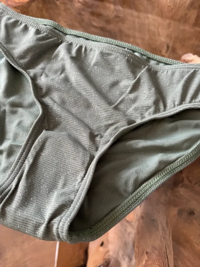 Bas de maillot de bain Roxy Vert kaki pailleté argenté Full coverage Taille XS Neuf avec étiquette. Prix neuf : 39.99€ N'hésitez pas à faire des lots ✨ réduction dès 2 articles (d'autres maillots de bain Roxy à vendre) Pour voir mes autres maillots de bain à vendre : #mdbludi2607 ✉️Pas de remise en main propre