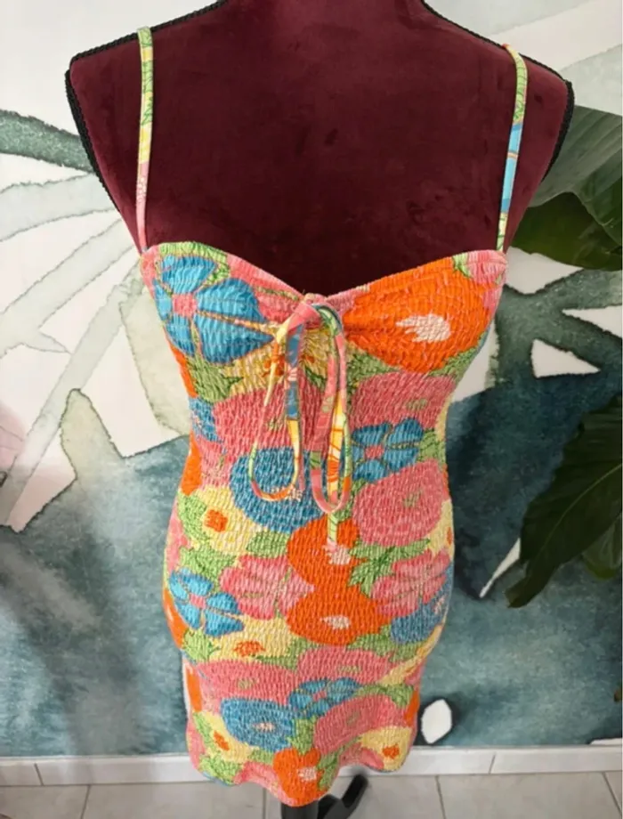 Robe Zara moulante multicolore fleurs femme