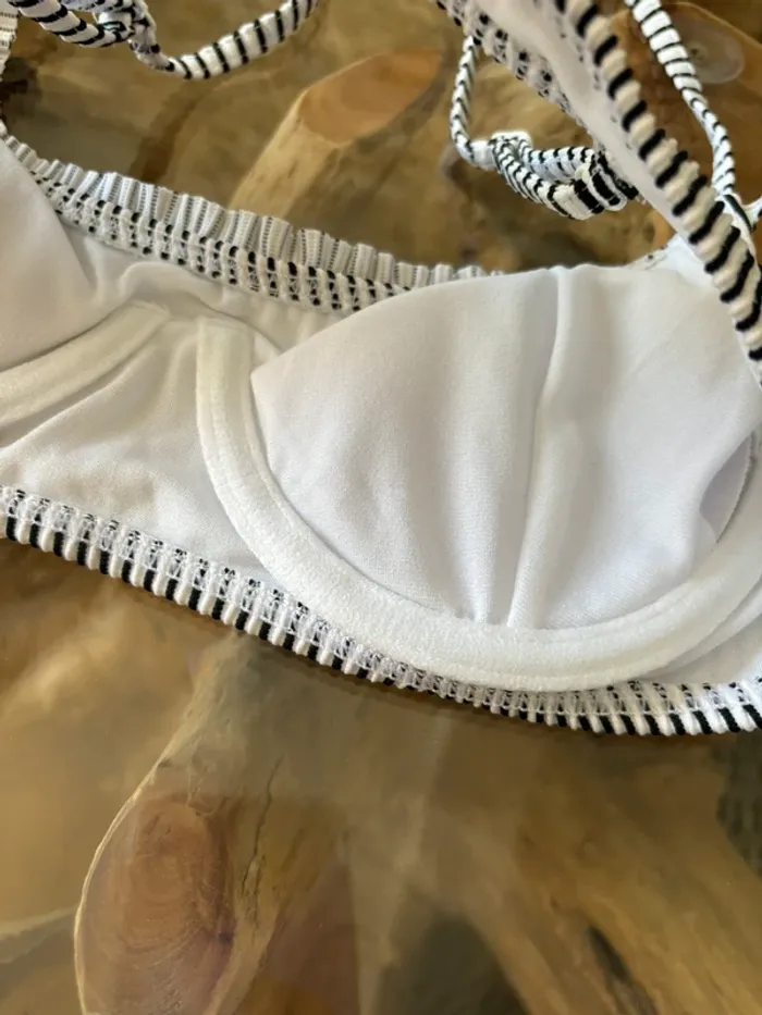 Haut de maillot de bain Roxy À rayures blanches et noires Petits coussinets amovibles Bretelles réglables Plusieurs positions dans le dos pour le réglage Taille S Neuf avec étiquette. Prix neuf : 39.99€ N'hésitez pas à faire des lots ✨ réduction dès 2 articles (d'autres maillots de bain Roxy à vendre) Pour voir mes autres maillots de bain à vendre : #mdbludi2607 ✉️Pas de remise en main propre