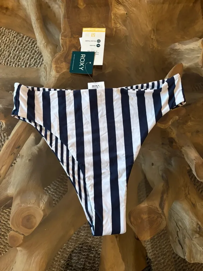 Bas de maillot de bain Roxy Réversible Bleu marine et blanc Rayures Regular coverage Taille L Neuf avec étiquette. Prix neuf : 42.99€ N'hésitez pas à faire des lots ✨ réduction dès 2 articles (d'autres maillots de bain Roxy à vendre) Pour voir mes autres maillots de bain à vendre : #mdbludi2607 ✉️Pas de remise en main propre