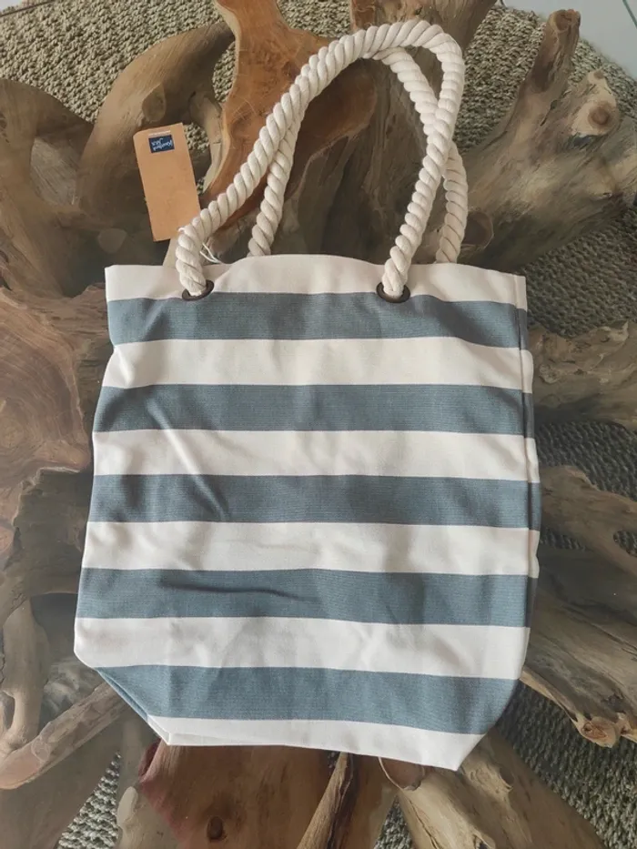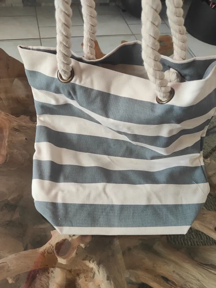 Sac, idéal pour la plage Rayé gris et beige. Anses en corde. Poche intérieure avec fermeture éclair The Nautical collection Environ 40x38cm Neuf avec étiquette Pour voir mes autres articles pour femme : femmeludi2607 N'hésitez pas à faire des lots ✨ réduction dès 2 articles ✉️Pas de remise en main propre / Pas d'envoi via Vinted go