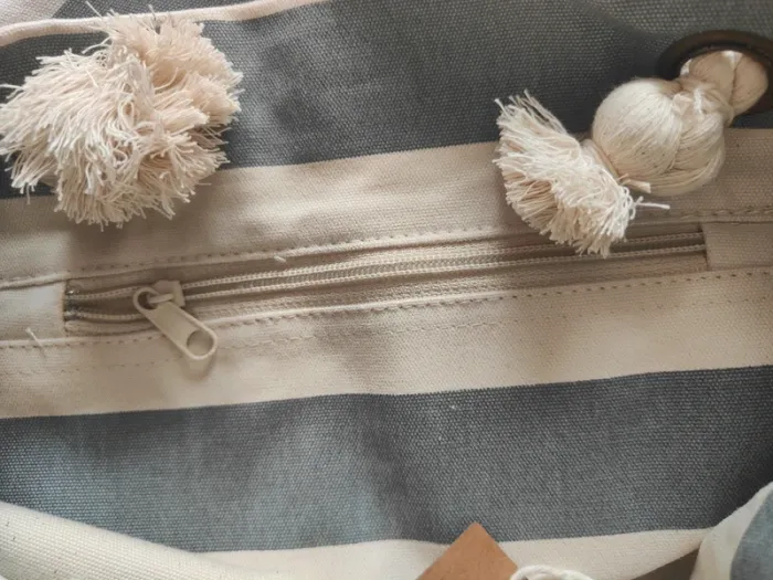 Sac fourré tout plage rayé gris beige poche intérieure - photo numéro 2