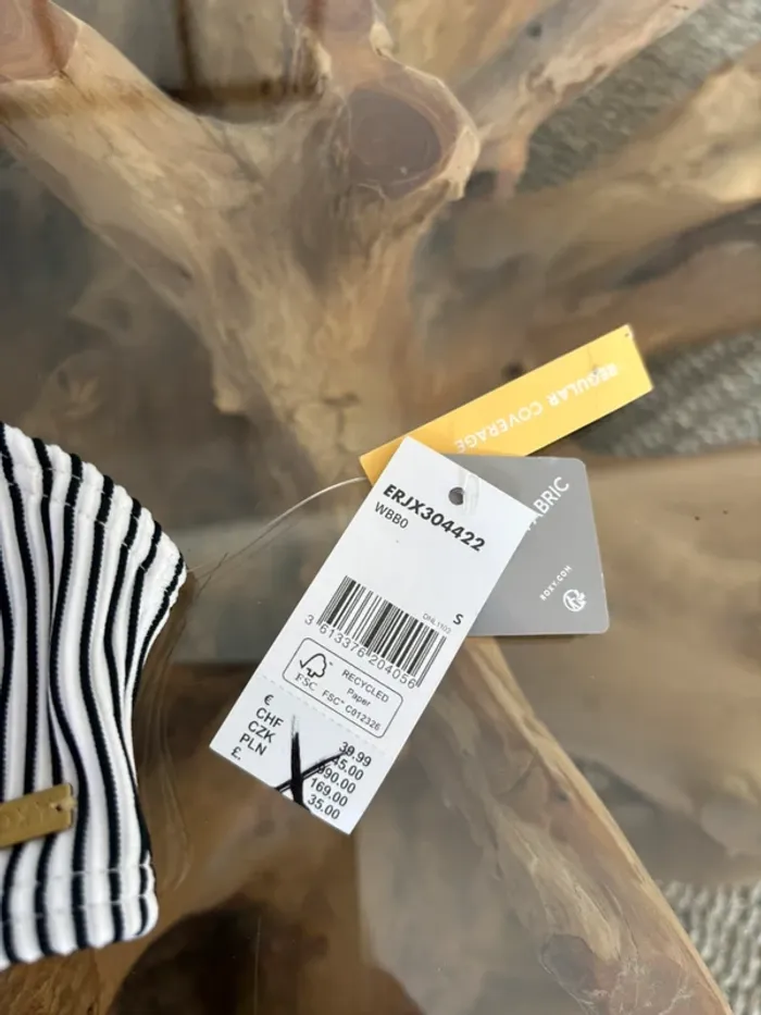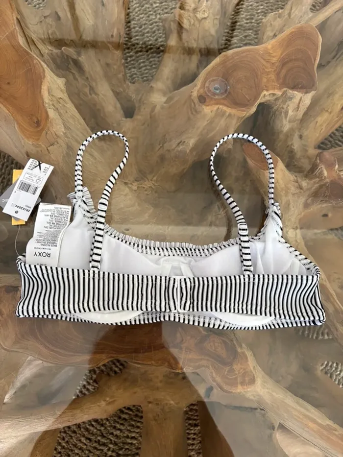 Haut de maillot de bain Roxy À rayures blanches et noires Petits coussinets amovibles Bretelles réglables Plusieurs positions dans le dos pour le réglage Taille S Neuf avec étiquette. Prix neuf : 39.99€ N'hésitez pas à faire des lots ✨ réduction dès 2 articles (d'autres maillots de bain Roxy à vendre) Pour voir mes autres maillots de bain à vendre : #mdbludi2607