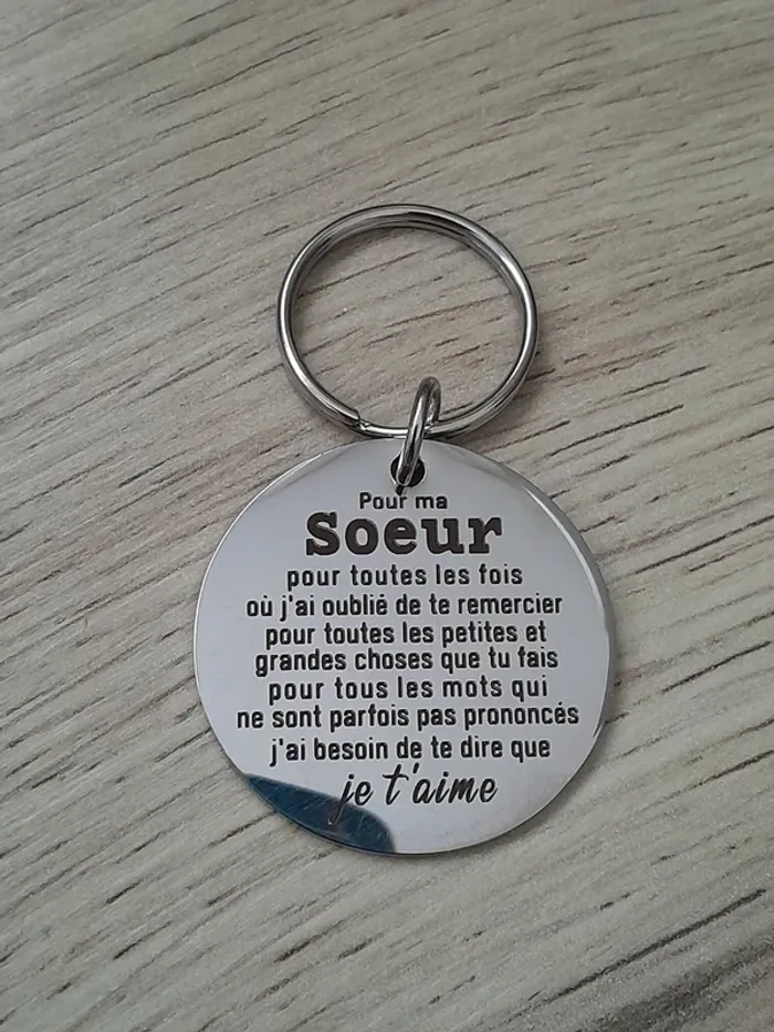 Porte clés, acier inoxydable, "Soeur" - photo numéro 1