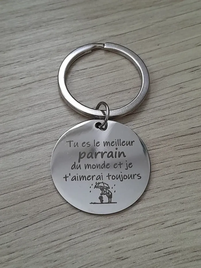 Porte clés, acier inoxydable, "Parrain", argenté - photo numéro 1