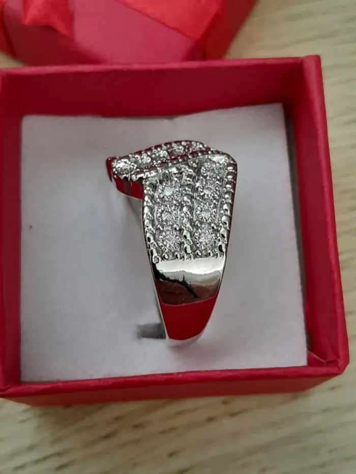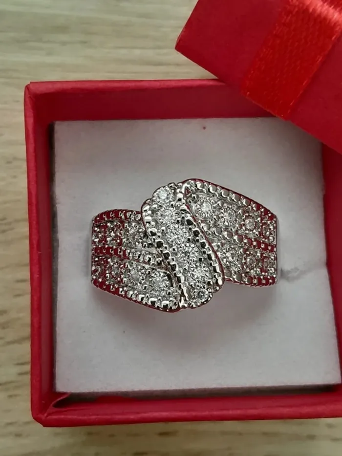 Bague avec strass en cristal,  taille 60 Bijou fantaisie,couleur argentée - photo numéro 1