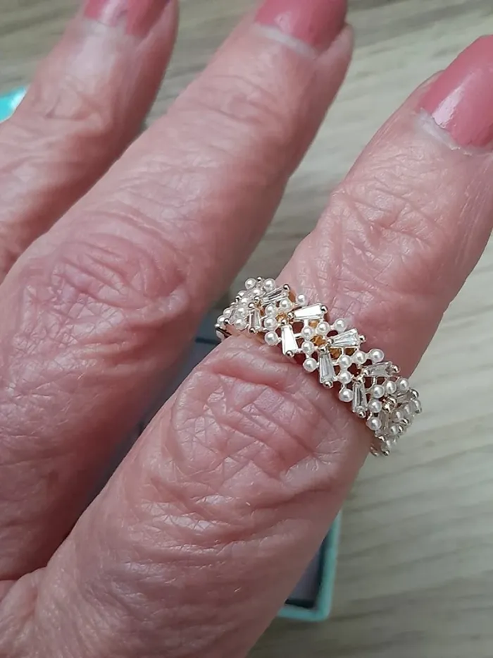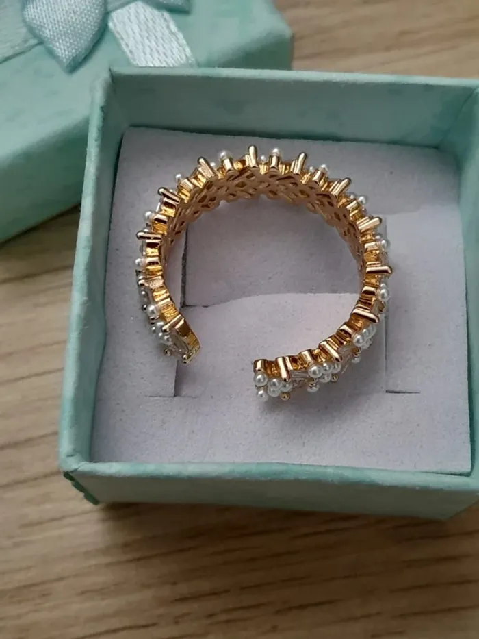 Bague, anneau avec petites perles, réglable pour doigts 54/56, couleur doré - photo numéro 7