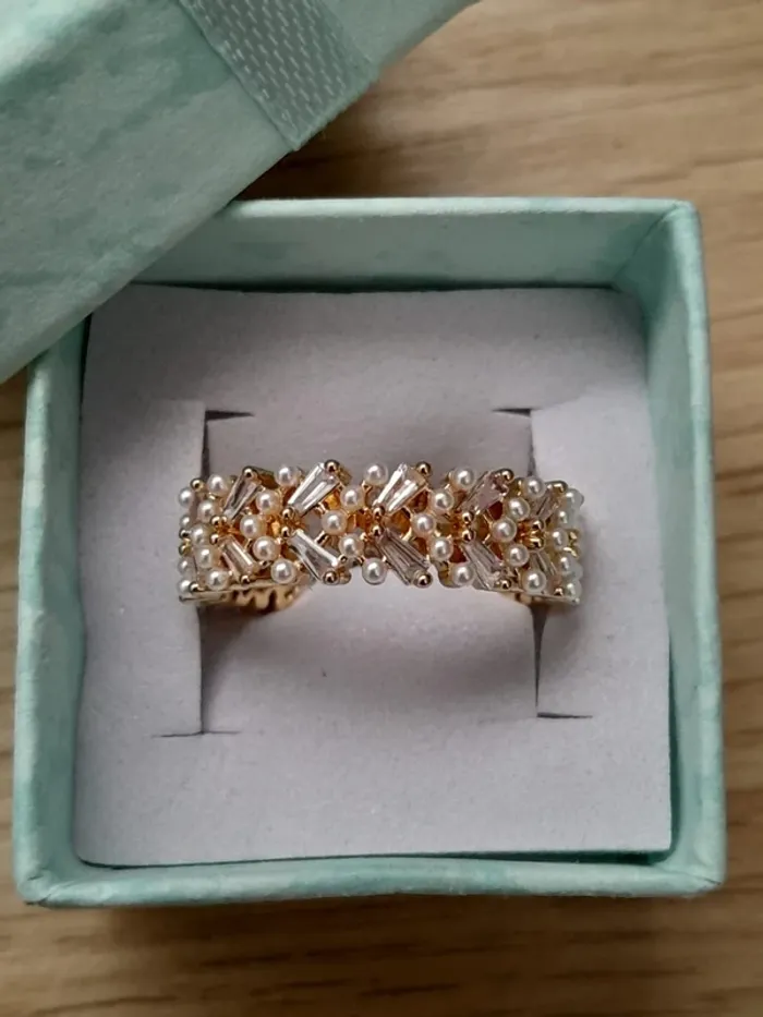 Bague, anneau avec petites perles, réglable pour doigts 54/56, couleur doré alliage de zinc