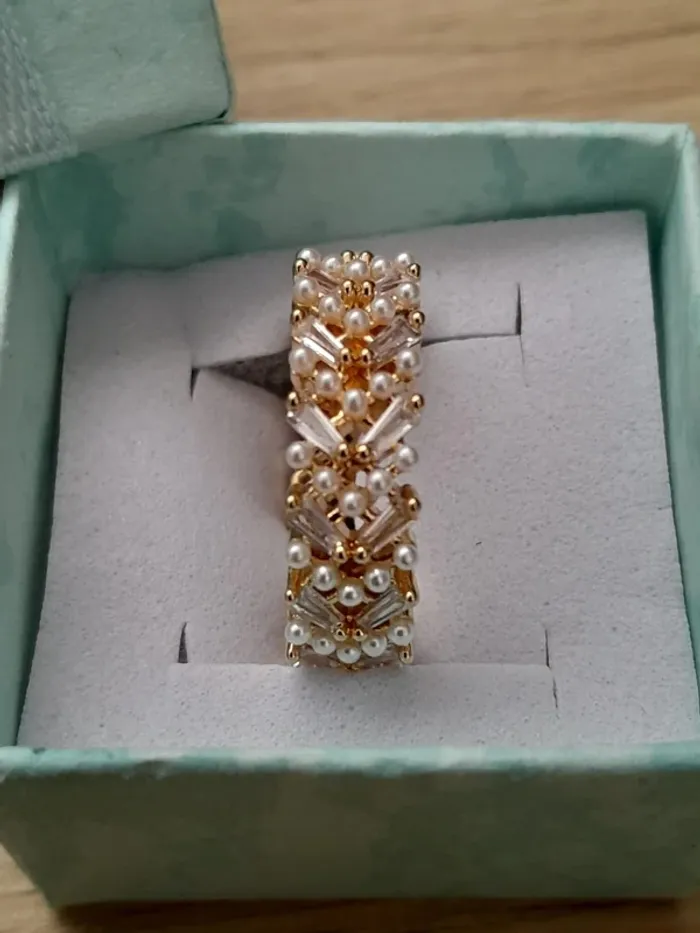 Bague, anneau avec petites perles, réglable pour doigts 54/56, couleur doré
