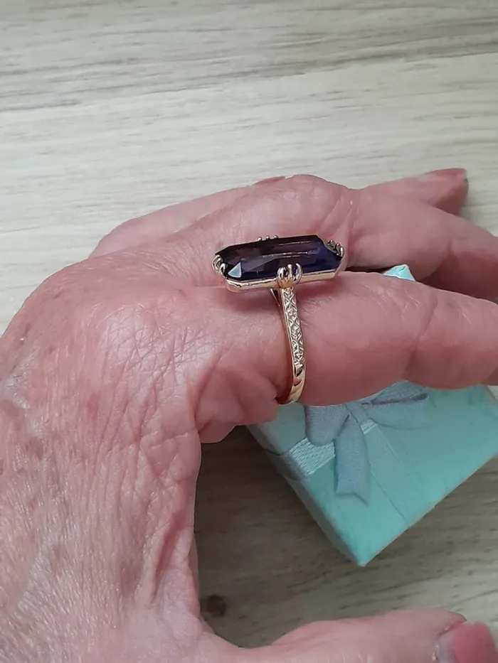 Bague rectangulaire,  longue pierre couleur violette ciselée taille 60 - photo numéro 5