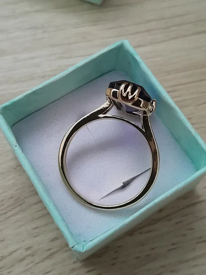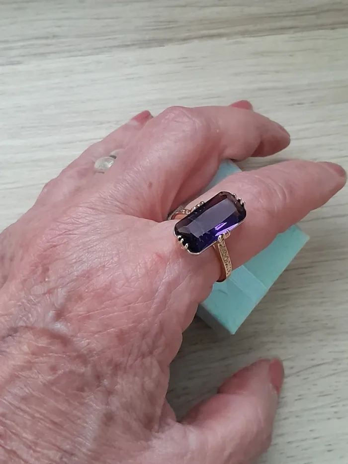 Bague rectangulaire,  longue pierre couleur violette ciselée taille 60 - photo numéro 1