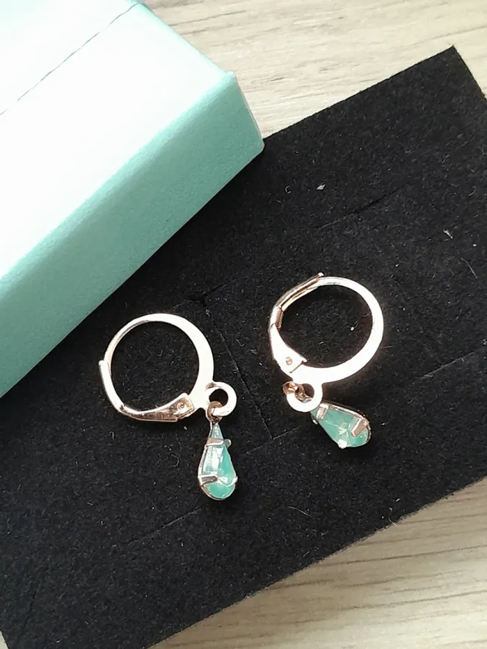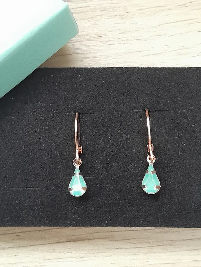 Petites boucles d'oreilles, pierre bleue claire en forme de goutte d'eau Discrètes et délicates couleur doré Alliage de zinc hauteur : 2,3cm