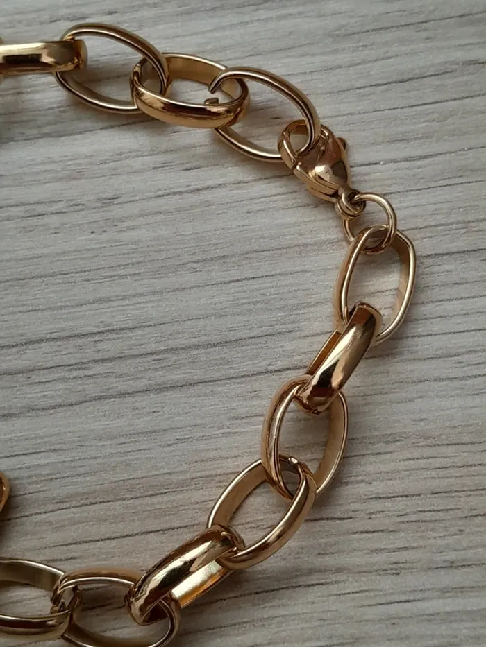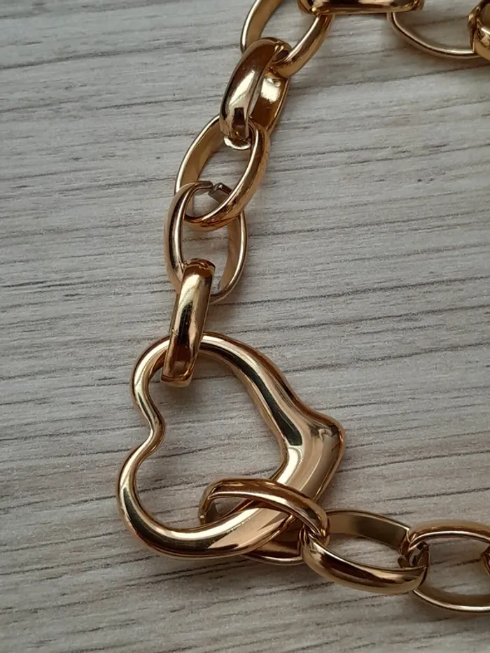 Bracelet à maillons épais avec pendentif coeur, acier inoxydable, couleur doré longueur : 21 cm