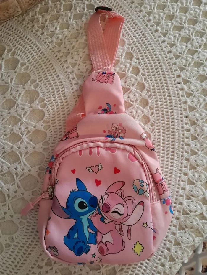 Petit sac, bandoulière, pour filles, Stitch, couleur rose Polyester Taille environ 13cmX 18cmX 6cm NEUF