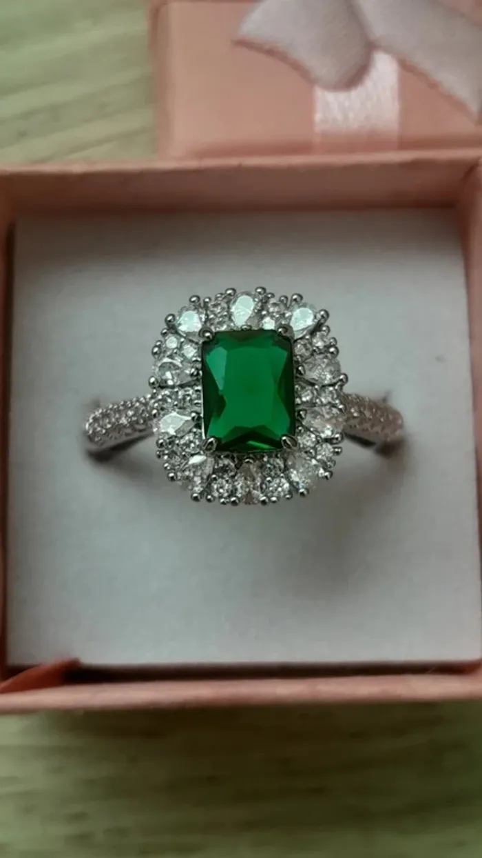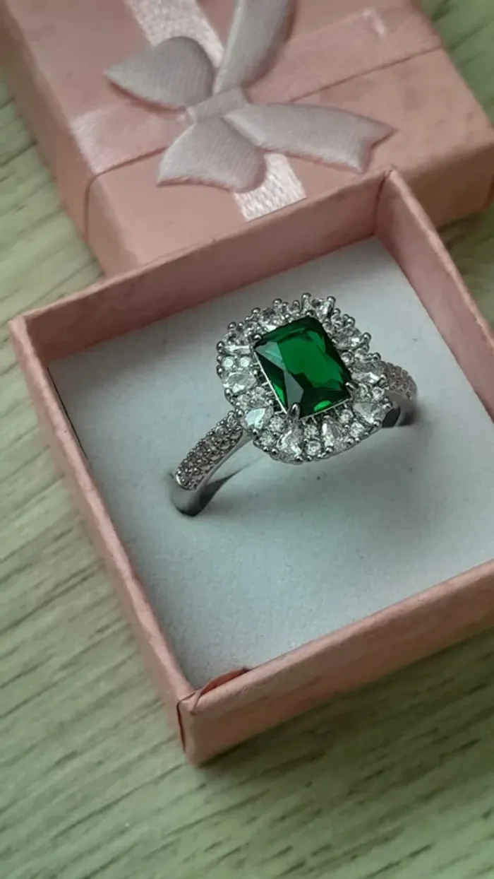 Bague plaquée argent, strass et pierre verte, taille 60 - photo numéro 5