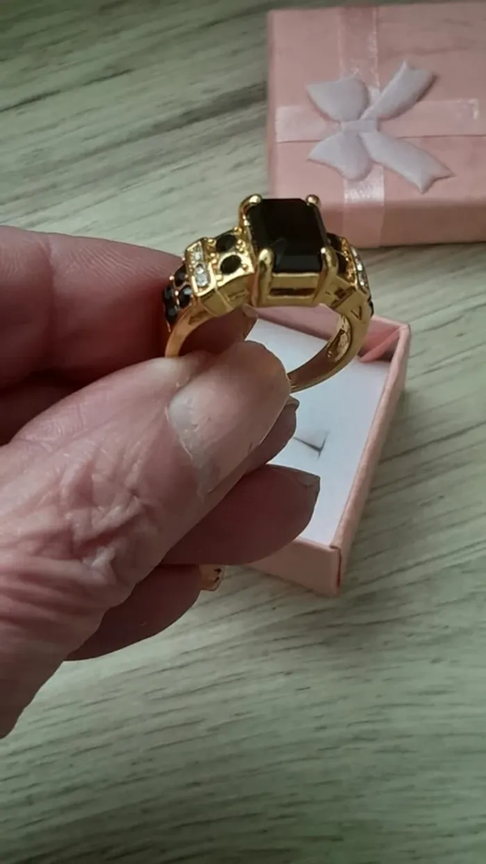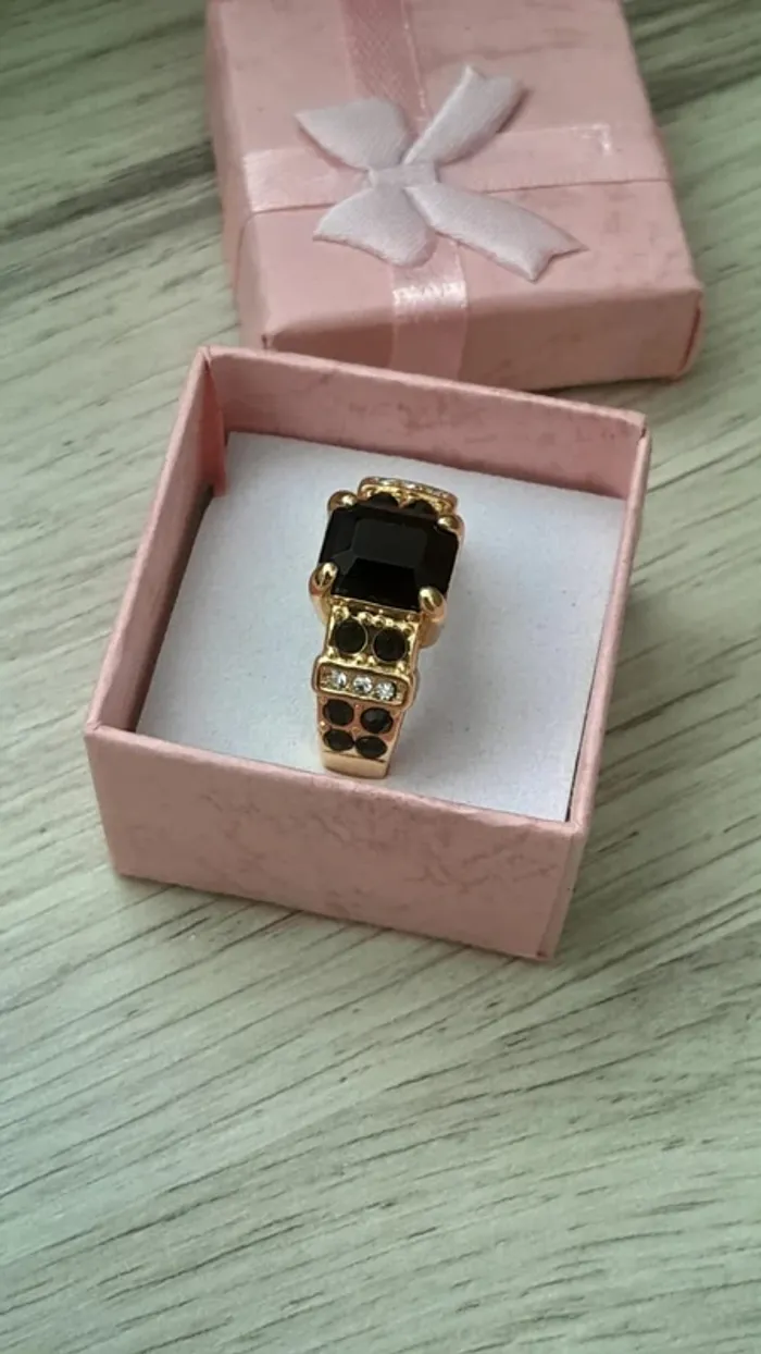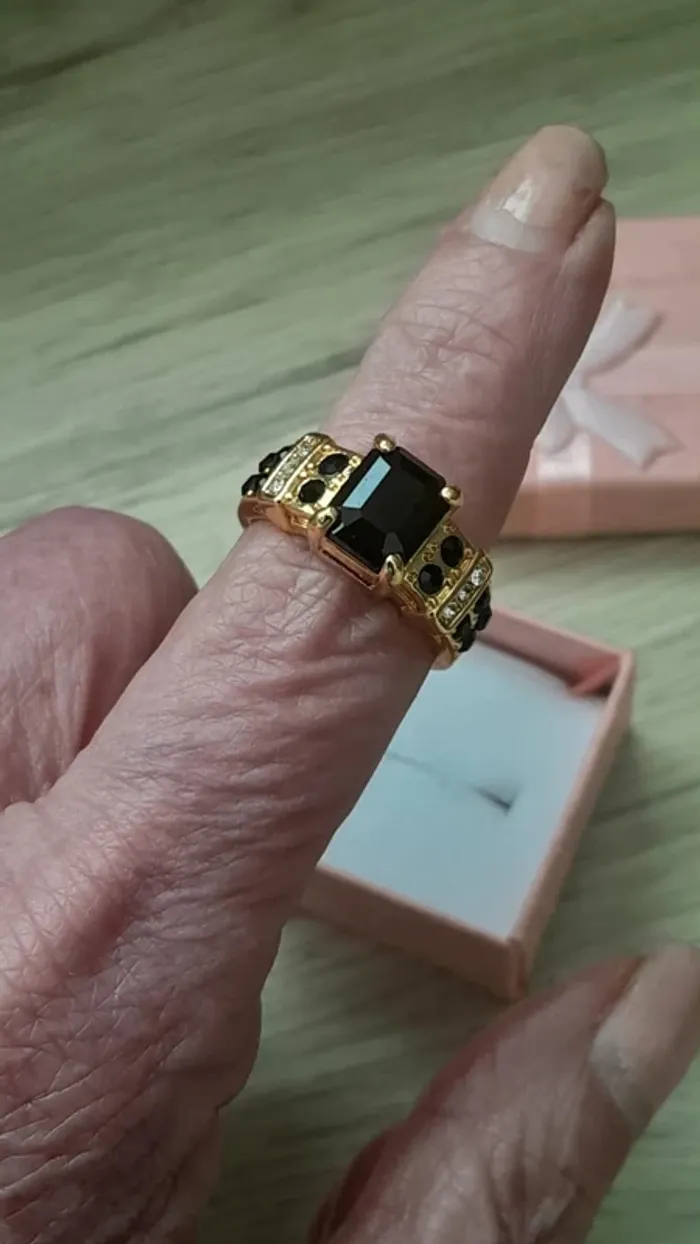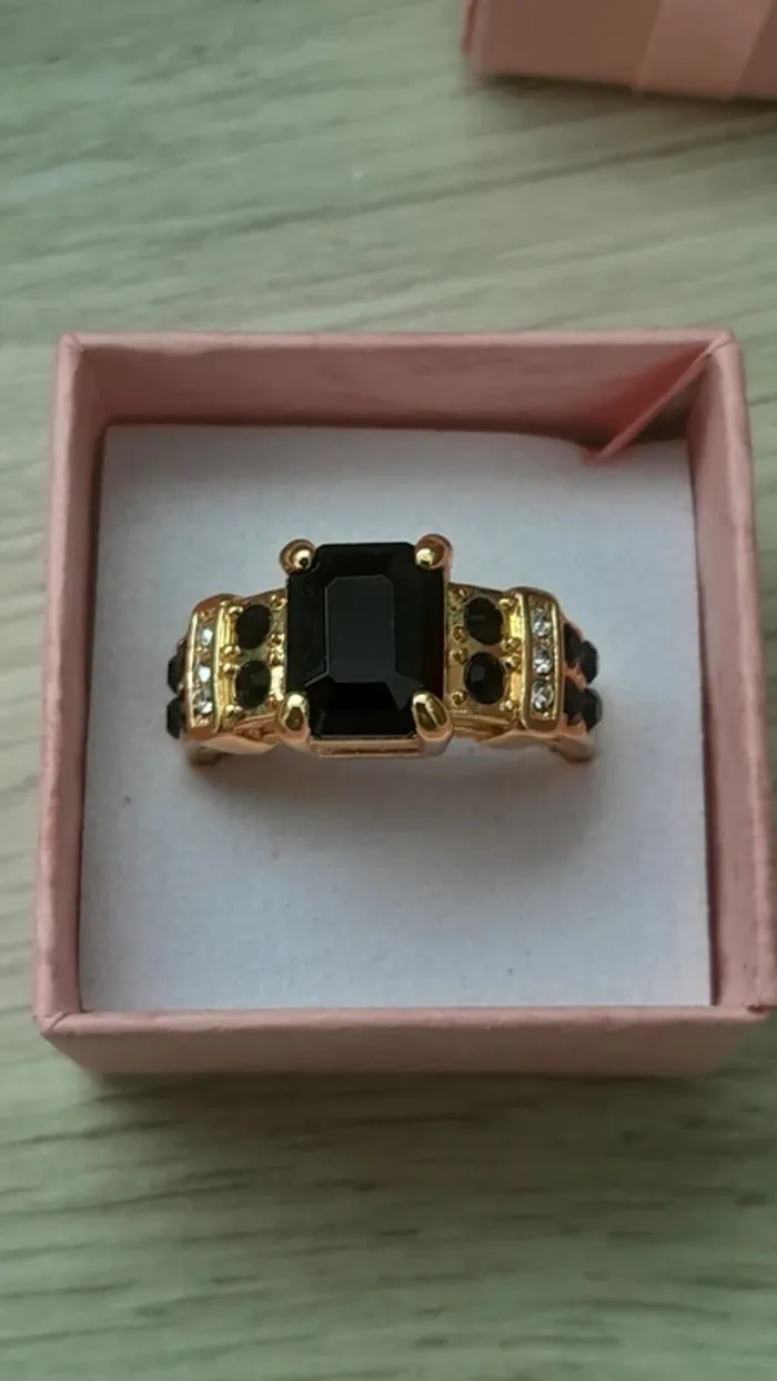 Bague dorée, avec pierres noires et strass, taille 60 - photo numéro 1