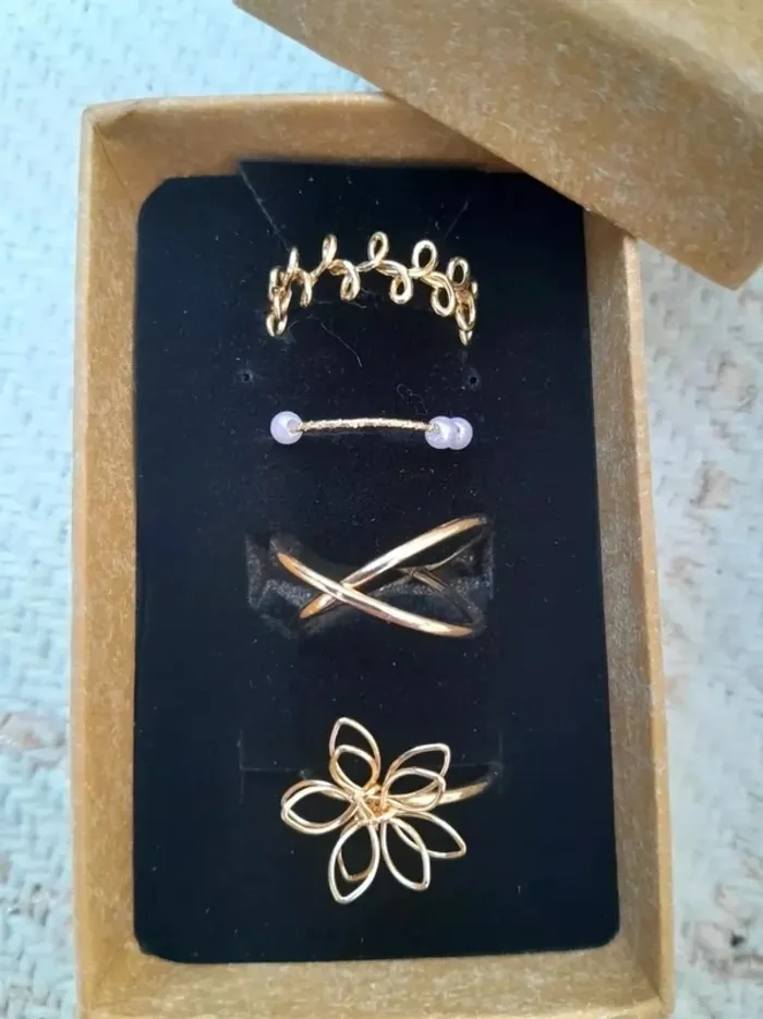 Lot de 4 bagues style Bohème, dorées 01 à porter sur plusieurs doigts, car les bagues n'ont pas la même taille dorées
