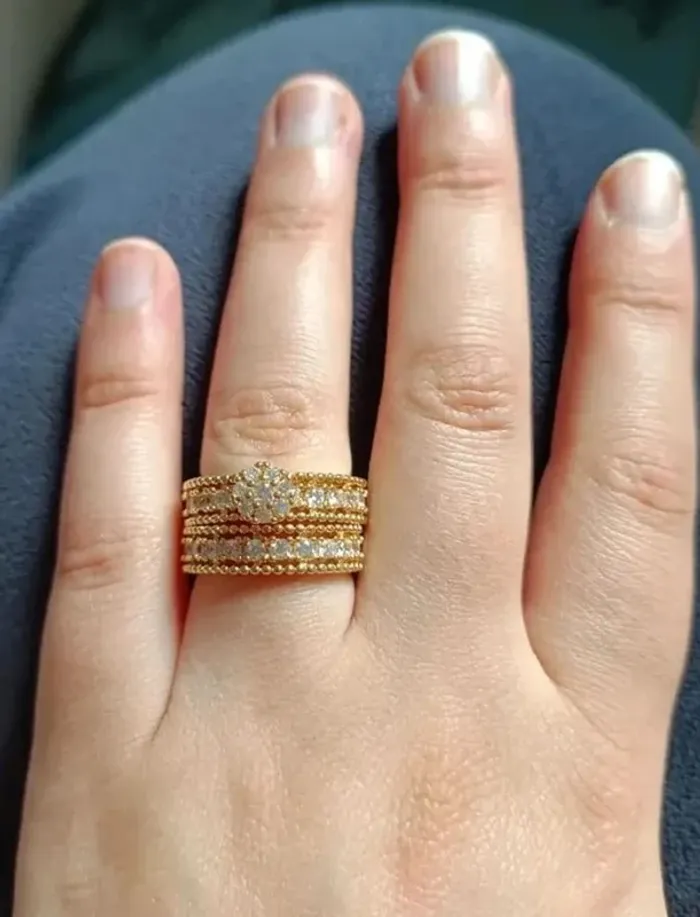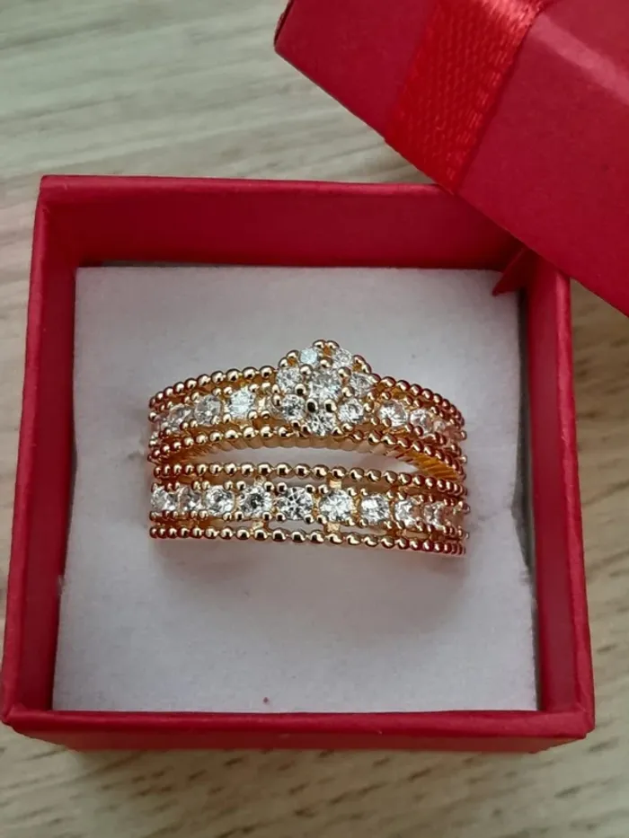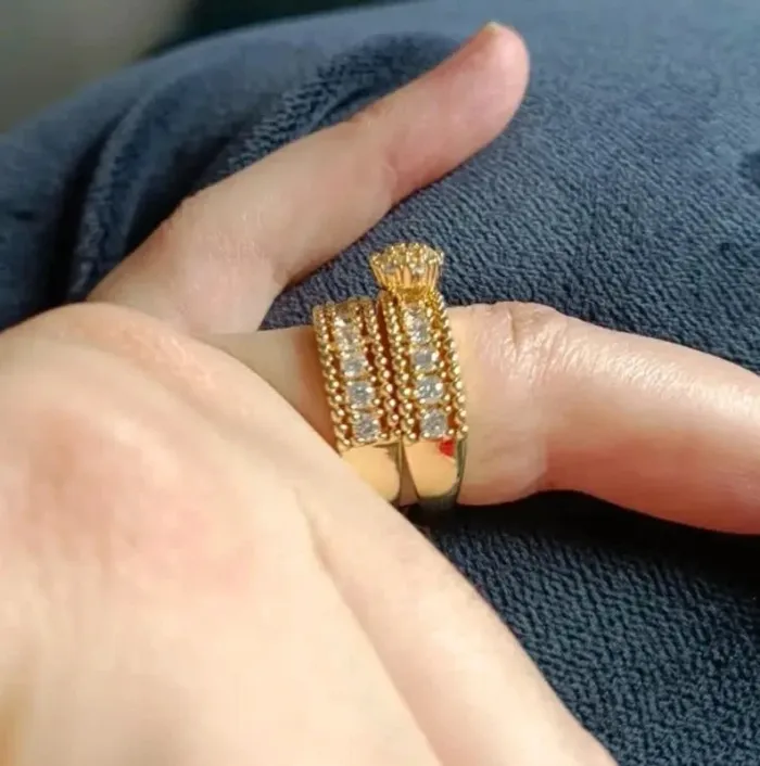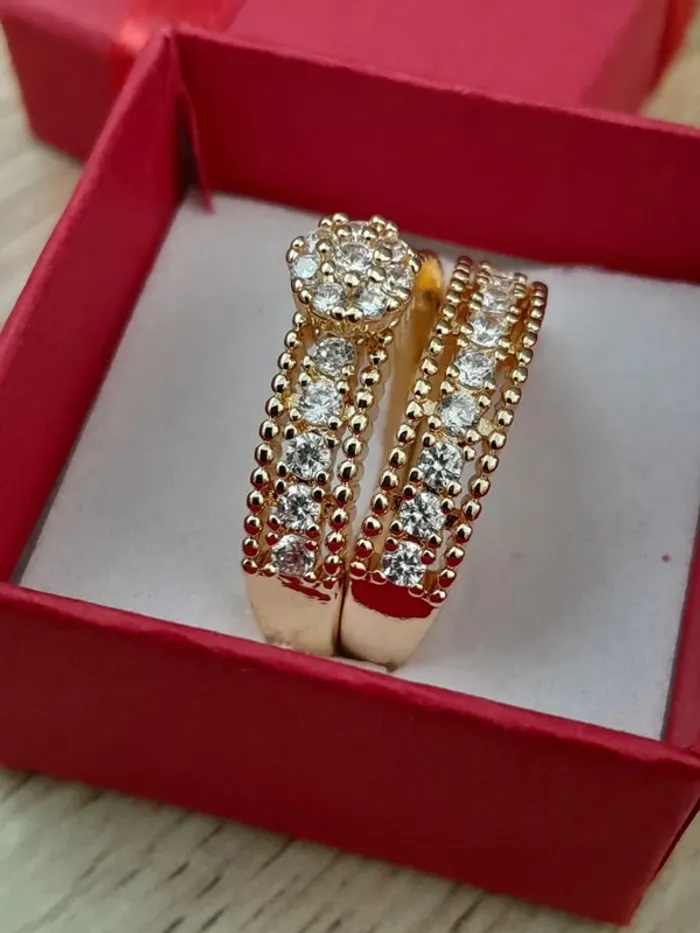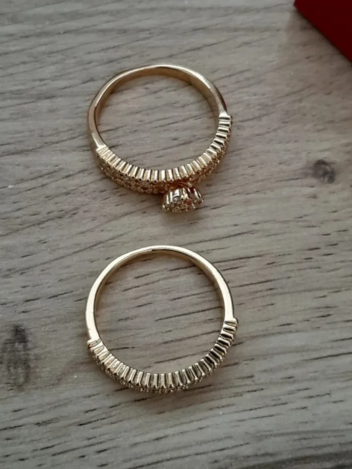 Ensemble de 2 bagues, couleur dorée, strass, taille 60