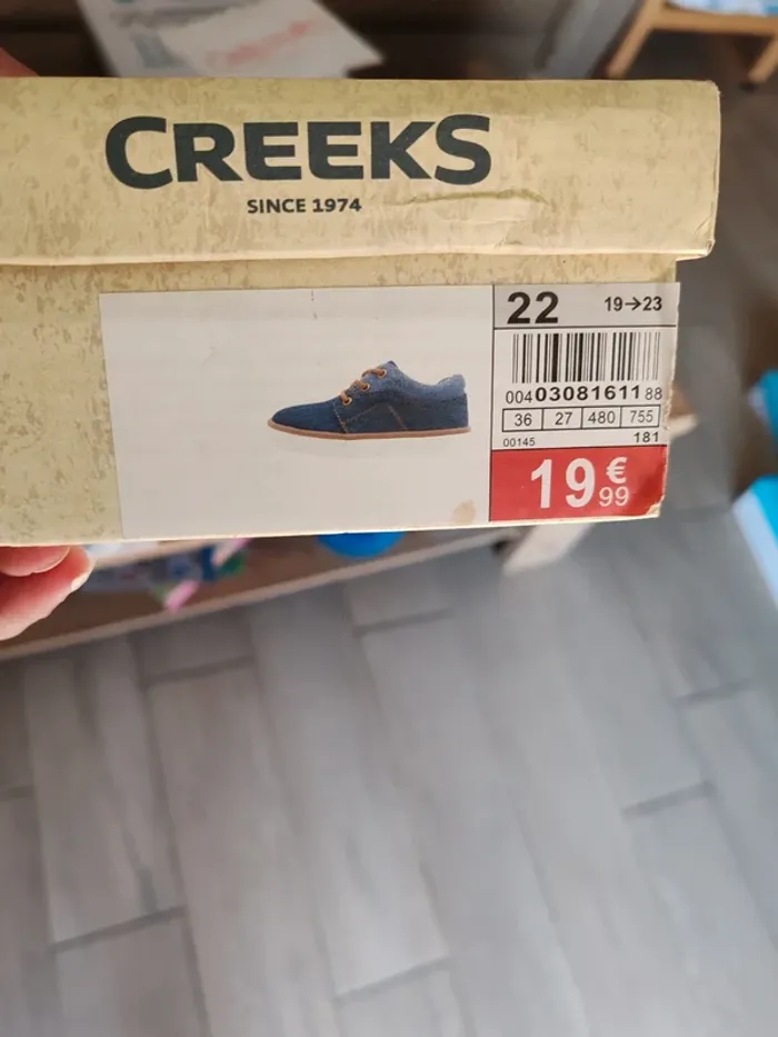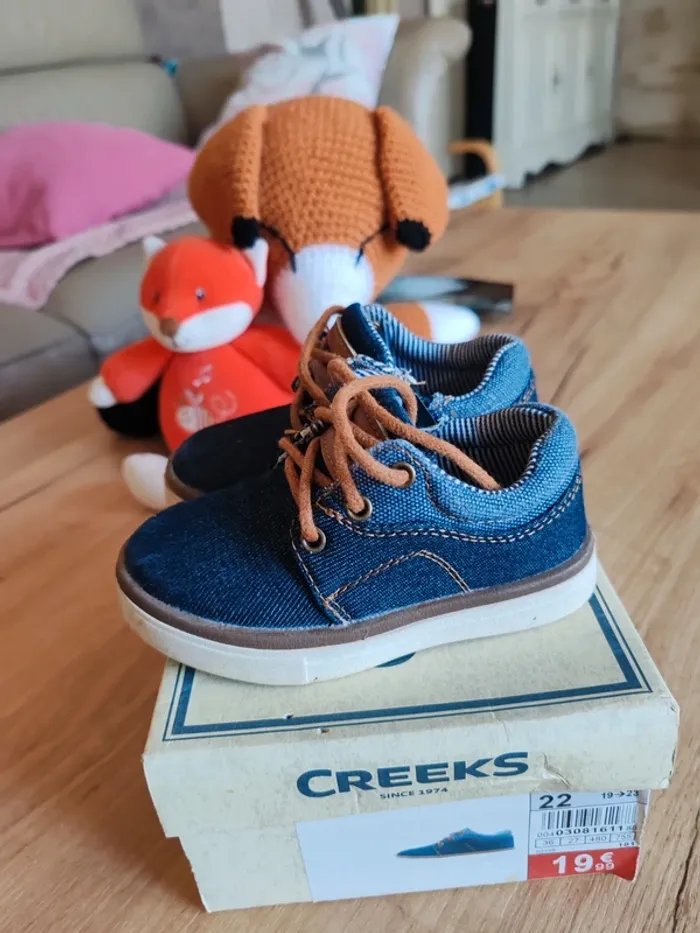 Chaussures comme neuve garçon type jean portées 1 fois avec boîte creeks 22