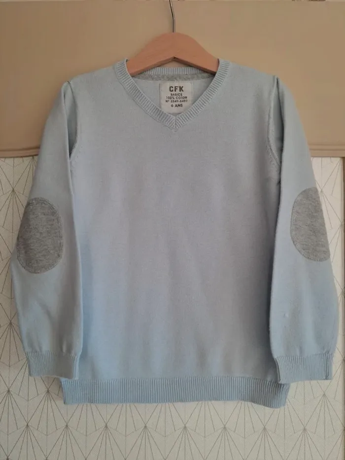 Pull bleu clair 6 ans cfk tbe boule manche présente à l'achat 1 micro tâche peu visible