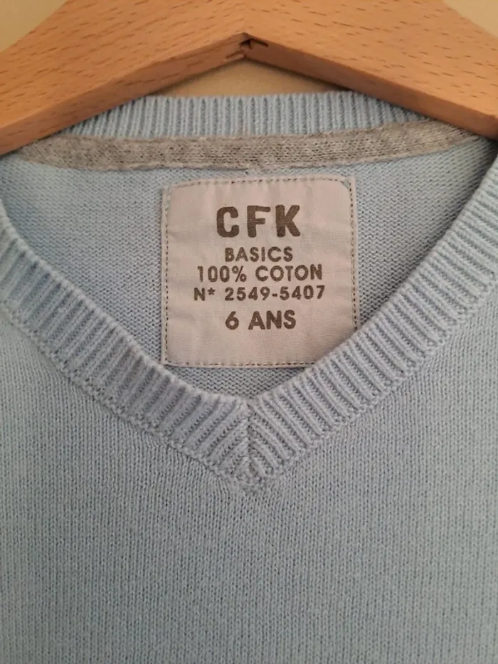 Pull bleu clair 6 ans cfk tbe boule manche présente à l'achat 1 micro tâche peu visible - photo numéro 5