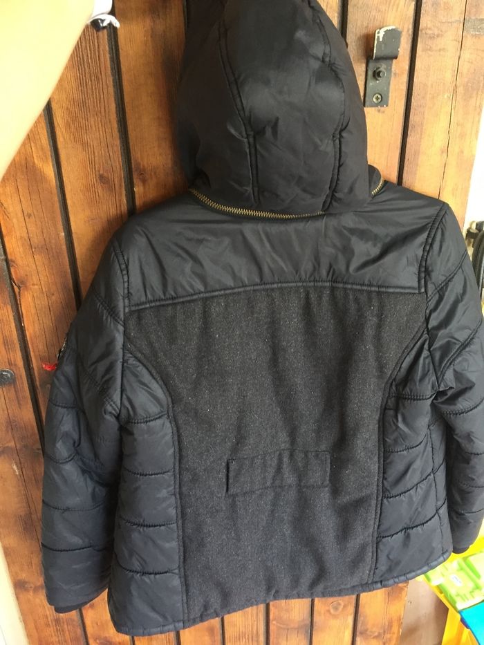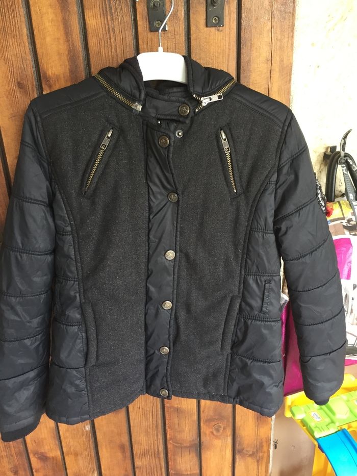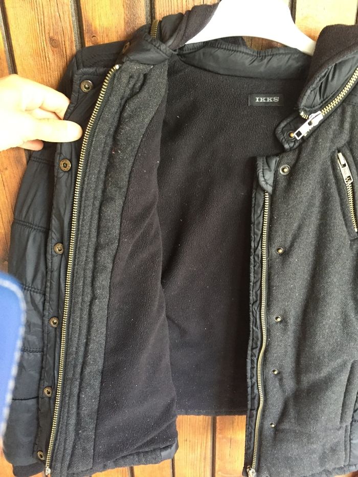 📌Blouson ikks bon etat, 📌rapiécé sur la manche voir photo , capuche amovible, mélange tissu /kway 📌Il.n y a plus la ceinture d origine