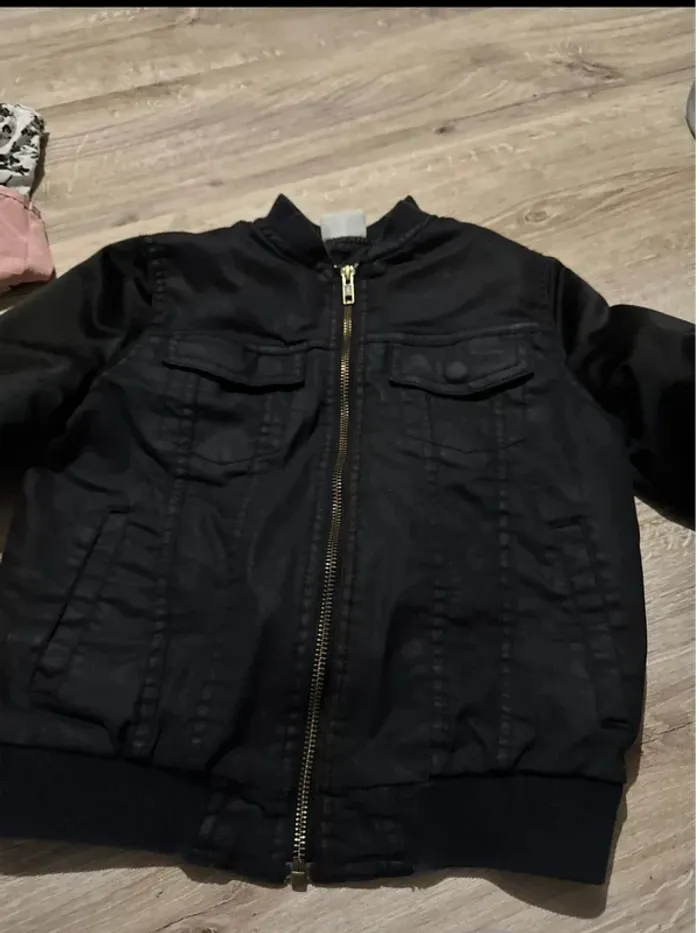 Veste noire Zara pour fille ou garçon, taille 10 ans (140 cm). Fermeture zippée dorée sur le devant, deux poches poitrine à rabat et poches côtés. Finition bord-côte au bas et aux manches pour un effet bomber tendance. En bon état général, pratique et stylée pour la mi-saison. ✨ Marque : Zara 📏 Taille : 10 ans / 140 cm ⚡ Fermeture : zip doré 🎯 État : Bon état