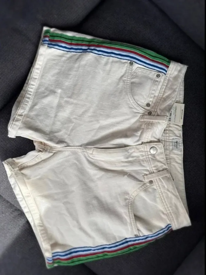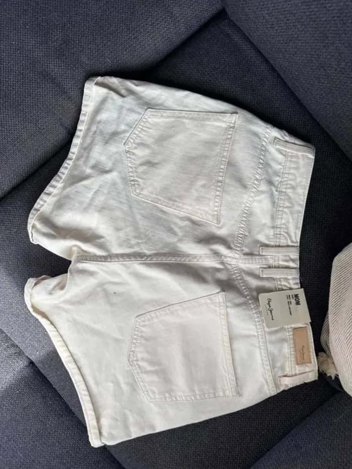 Taille 30 Pepe jeans Denim Lignes de couleurs sur le côté Violet short tape Mom Poches avant et arrières Taille haute Beige Taille 40