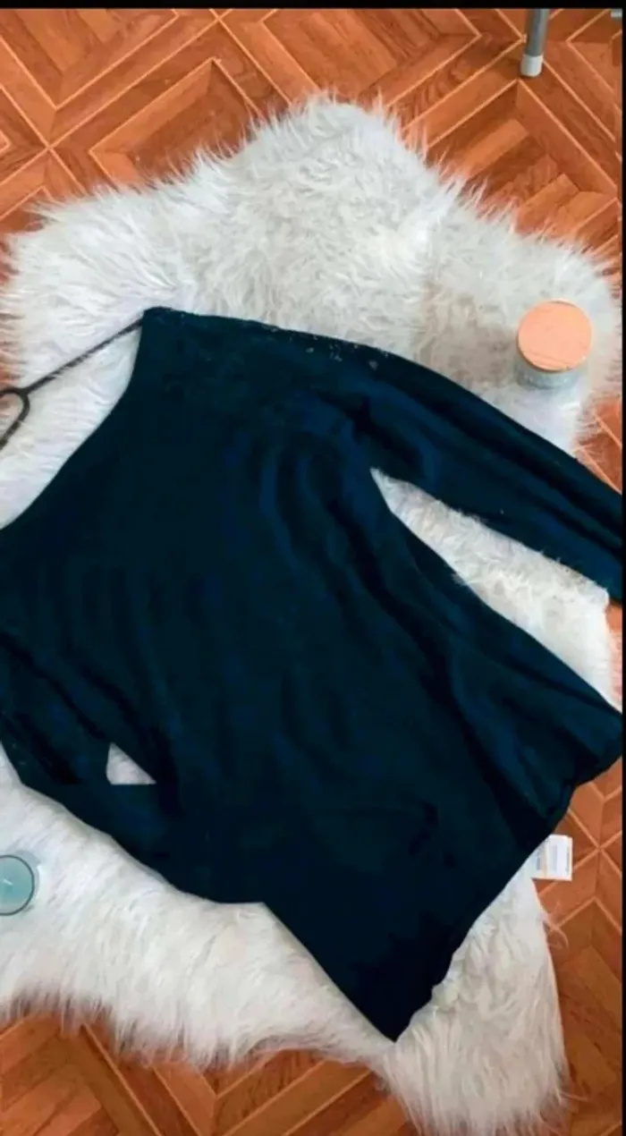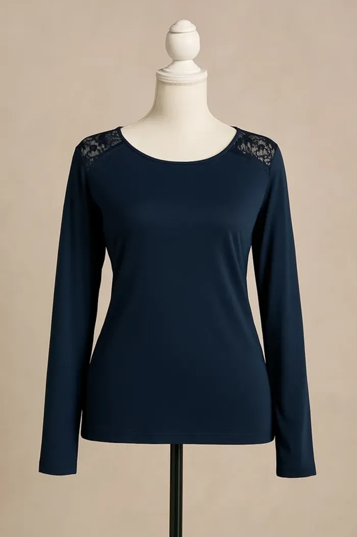 haut pull fin bleu marine avec dentelle taille L 42/44 très bon état #cleophile42 #cleophile44