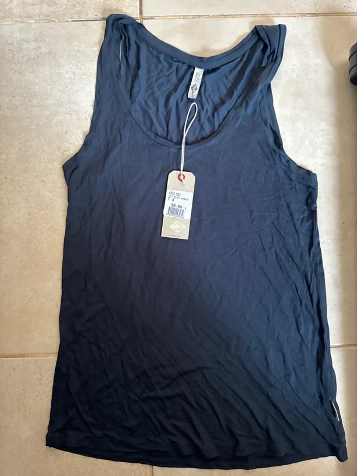 Neuf avec étiquette. Couleur : bleu marine uni, coupe basique et confortable. Parfait à porter seul l’été ou en superposition sous une veste. Matière douce et légère pour un confort optimal. ✨ Marque : Lee Cooper 📏 Taille : S 🆕 État : Neuf avec étiquette