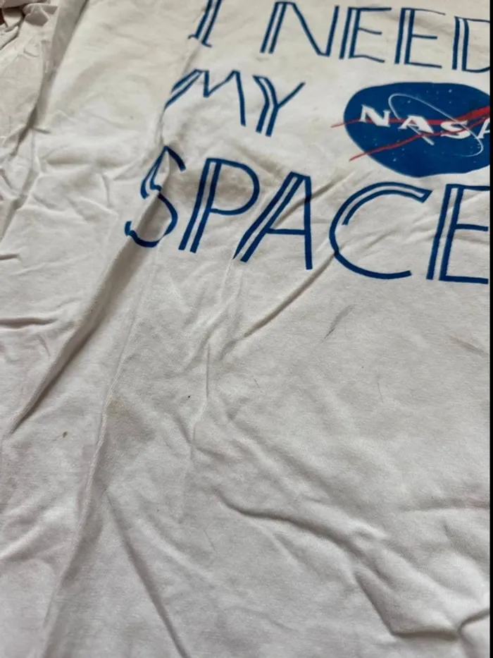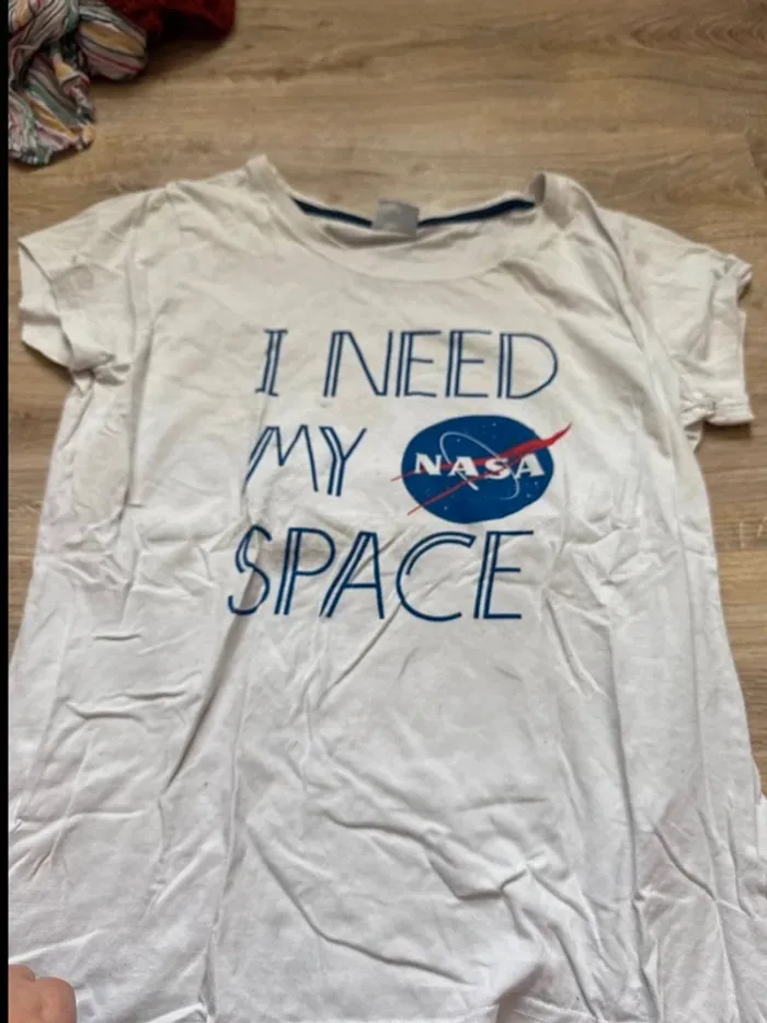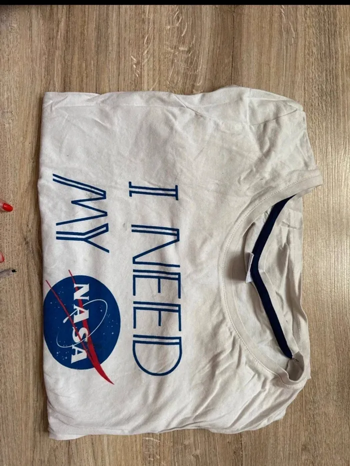 T-shirt nasa Blanc et bleu Femme Taille l Porté quelques fois Traces de sèche linge
