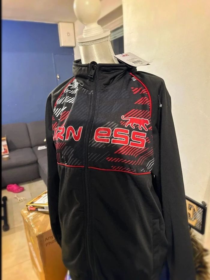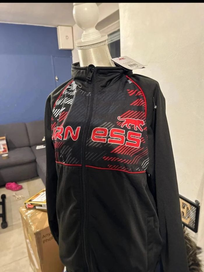 Haut de survêtement zip Sans capuche Veste jackyson Airness Neuve Avec étiquette Noir et rouge Taille M