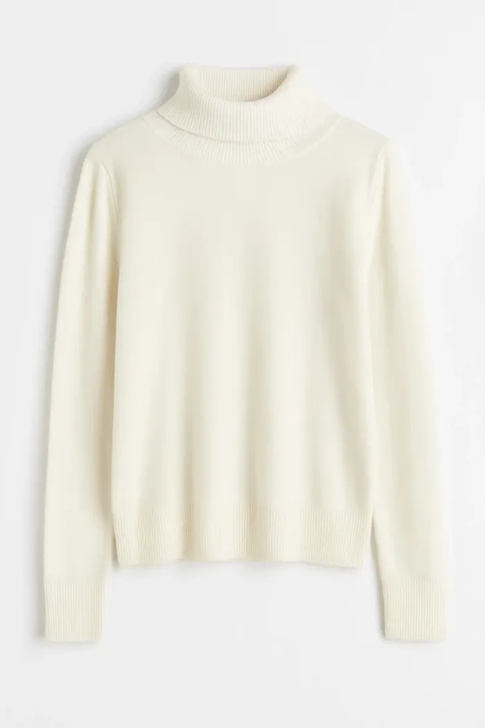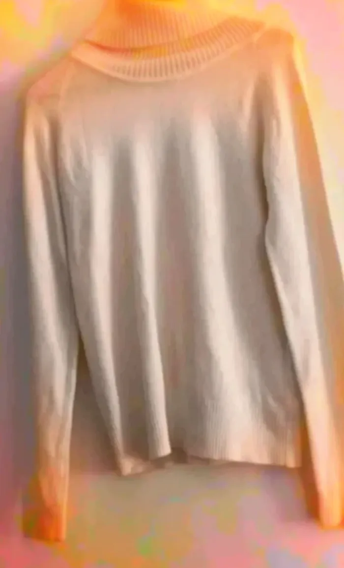 pull col roulé léger blanc crème de chez camaïeu porte quelques fois légères bouloches t2 donc équivaut à un 38/40 #cleophile38