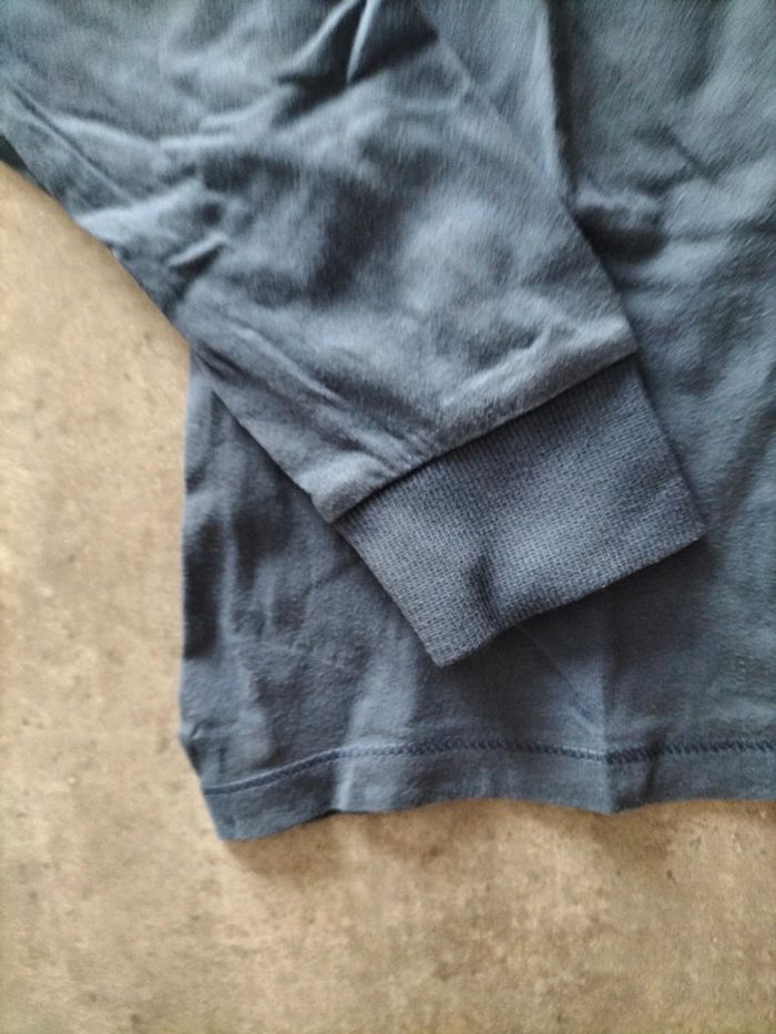 Tee-shirt bleu imprimé manches longues avec grand bord côte à la manche. #fanfangarcon10@fanfan35320