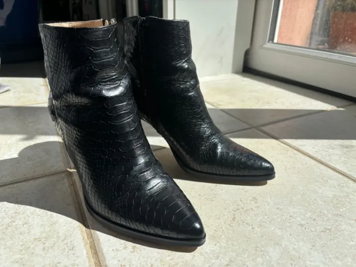 Bottines style python en cuir noir comme neuves - photo numéro 3
