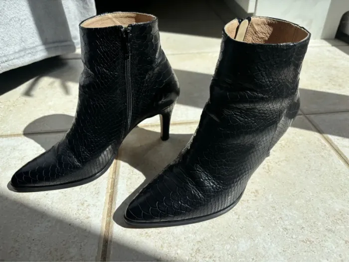 Bottines style python en cuir noir comme neuves