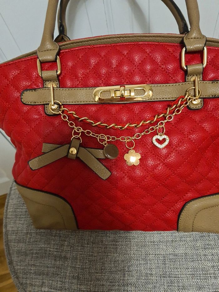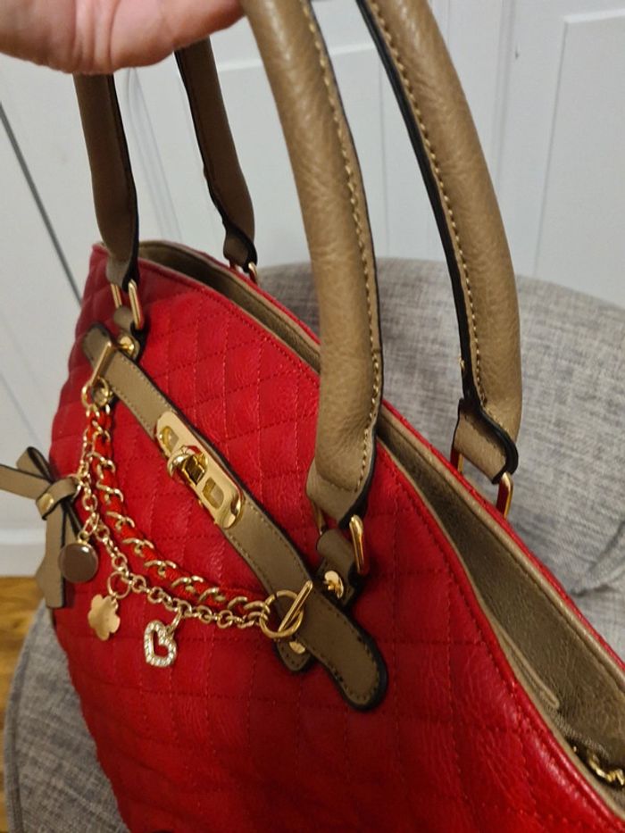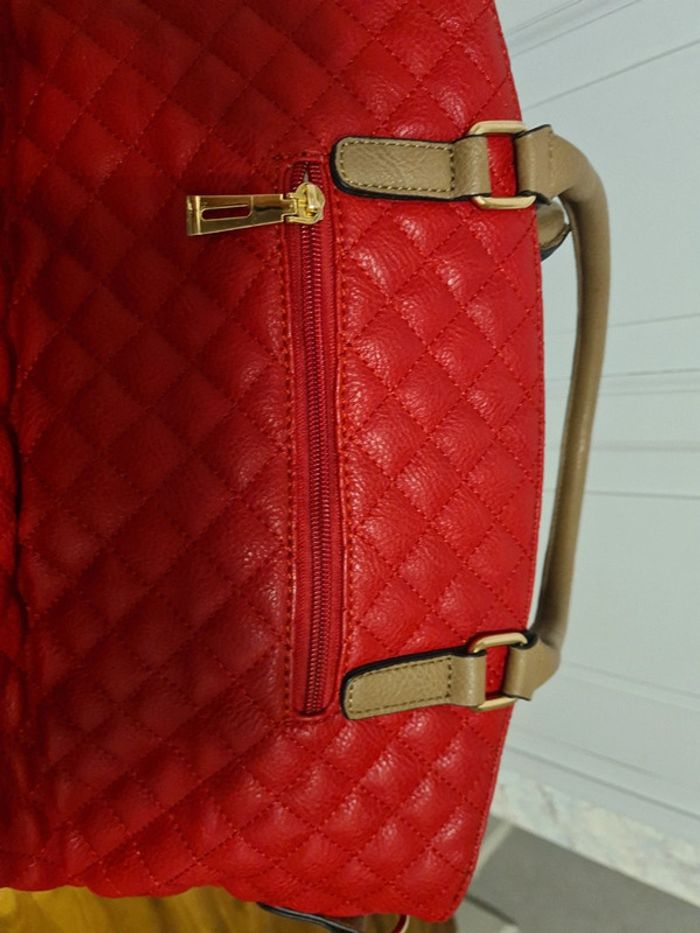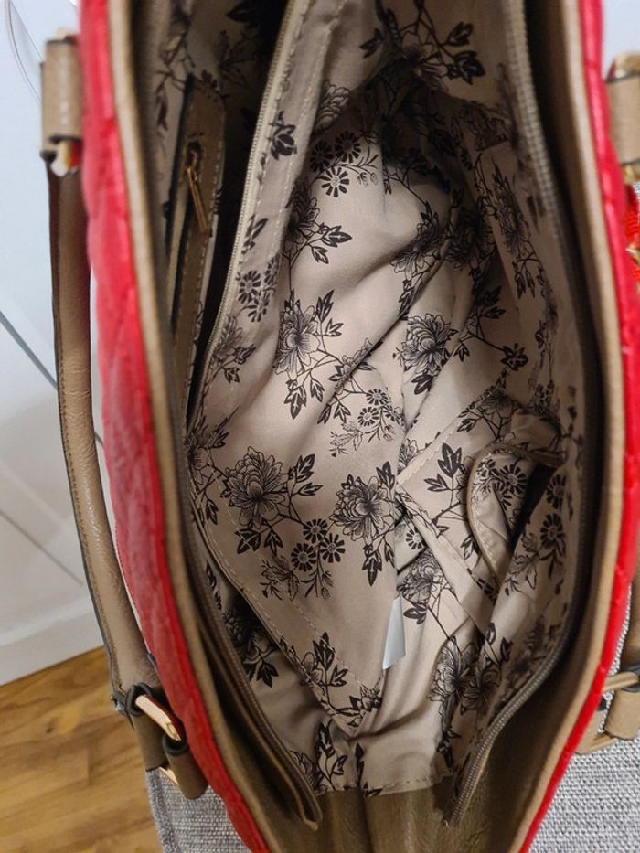 Sac à main rouge multi poches intérieure