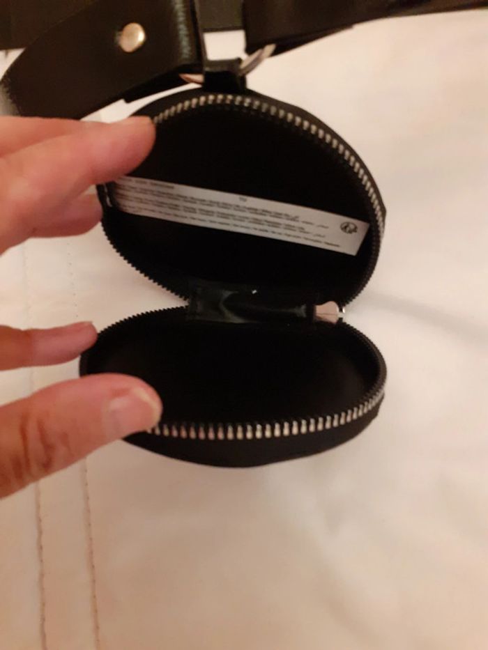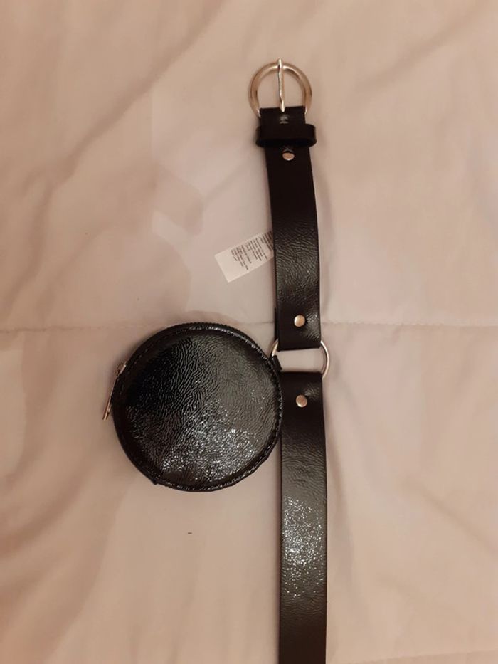 Jamais mis .synthétique Longueur de 103cm d'un bout à l'autre Marqué sur étiquette 85cm Largeur 3cm Diamètre de la bourse 10cm Boucle dorée