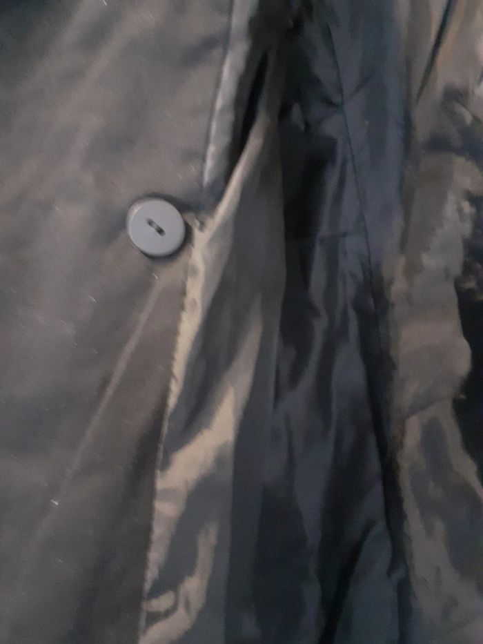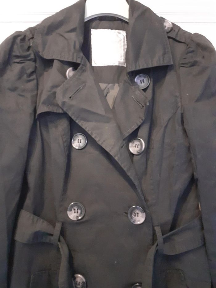 A été porté, bonne état. 2 poches cavalières. Ceinture. Gros boutons. Intérieur 100%polyester Extérieur 100%coton