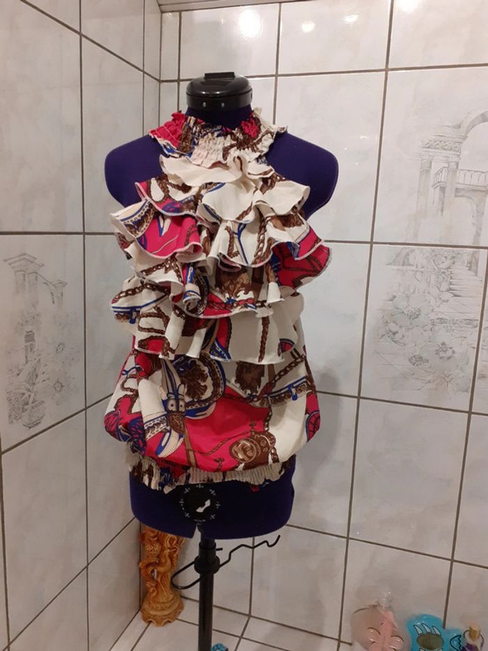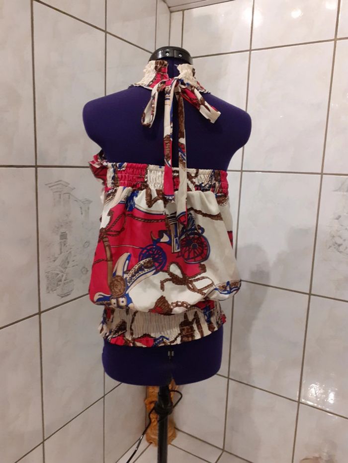 Bonne état, jamais porté Ni étiquette, ni taille .je pense un 36 Longueur 60cm environ Largeur 28cm Élastique bas et niveau haut du dos et tour du cou. Matière. Style nylon à mon avis 🙂