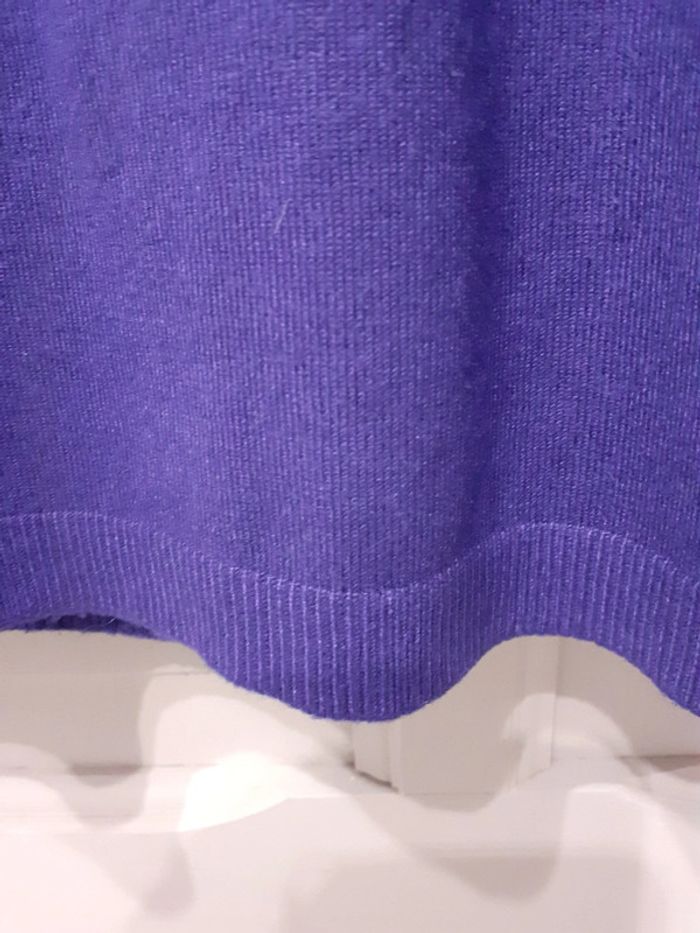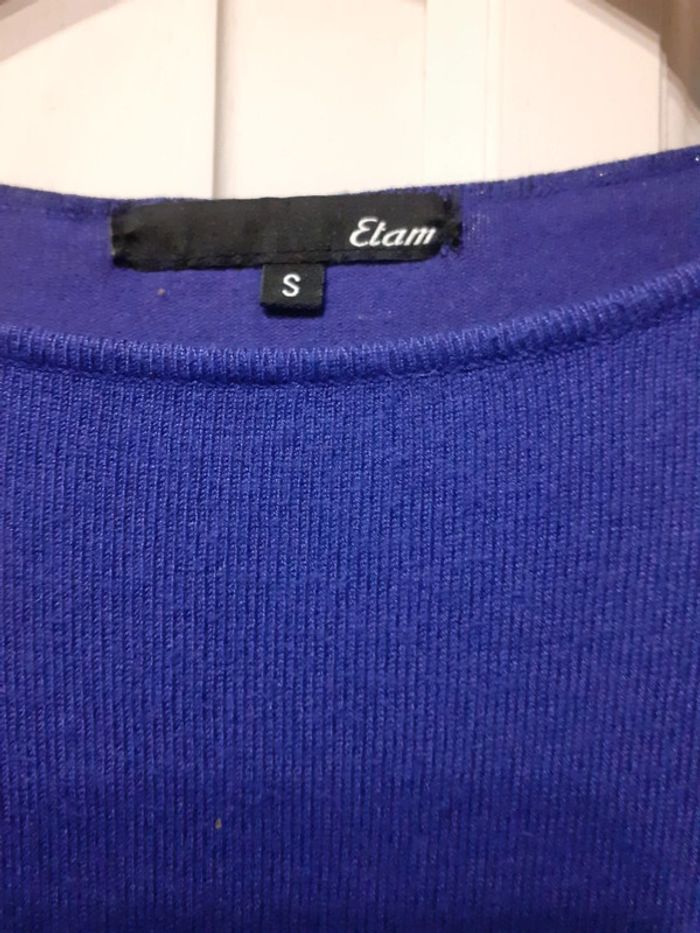 Petite bouloches au niveau de la poitrine. Fond de manches et bas du pull non étriqués. Couleur bleu nuit Etam S