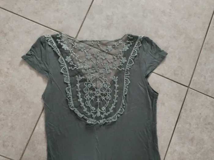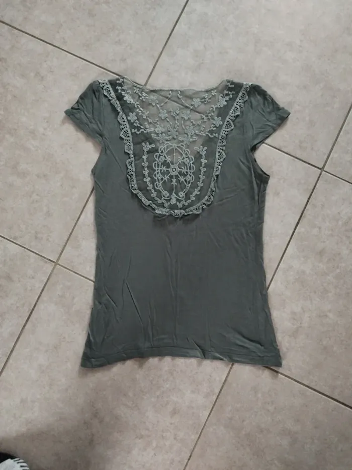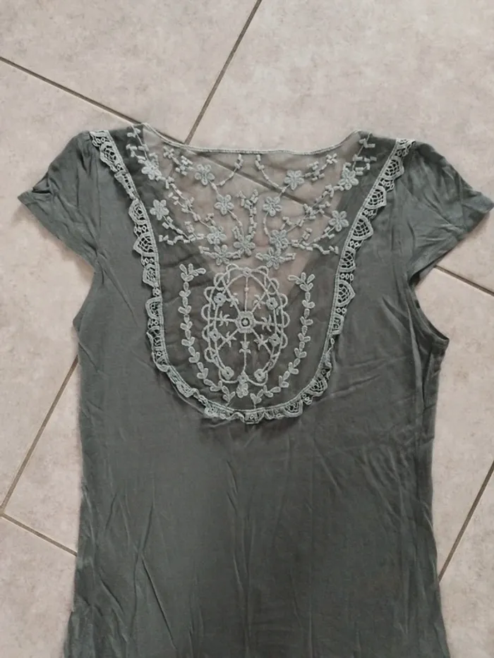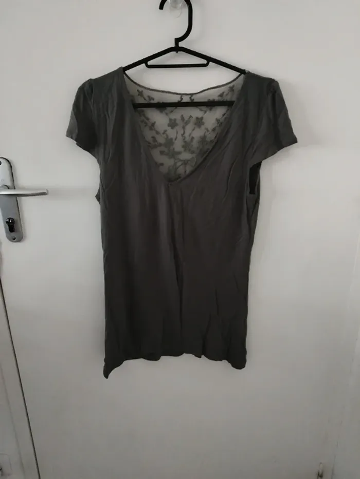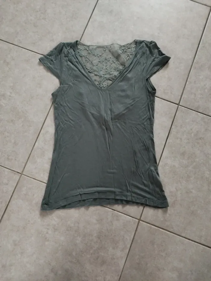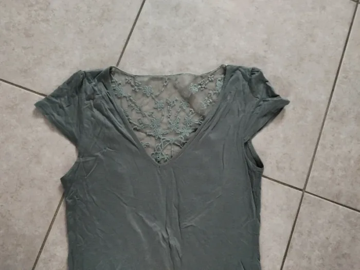 Tee shirt femme manches courtes. Ajouré dans le dos avec de la dentelle