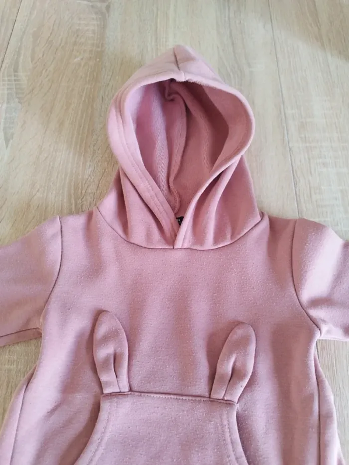 Sweat polaire à capuche. Motif lapin sur le devant avec poches