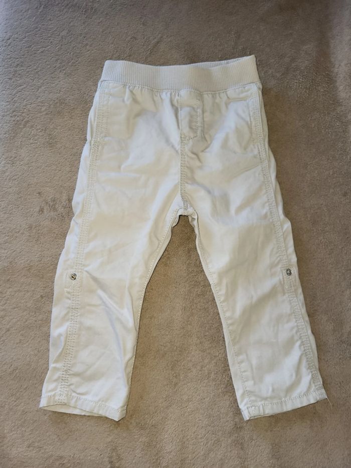 Pantalon léger gris clair Ceinture élastique Se transforme en pantacourt grâce aux pressions Attention tâché au niveau du bas de pantalon ( voir photos) #virgy61garcon18mois