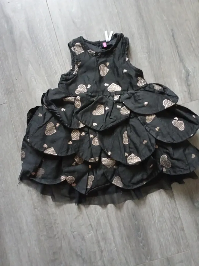 Robe de cérémonie noire et coeur doré Avec tulle Noté 18 mois mais taille petit