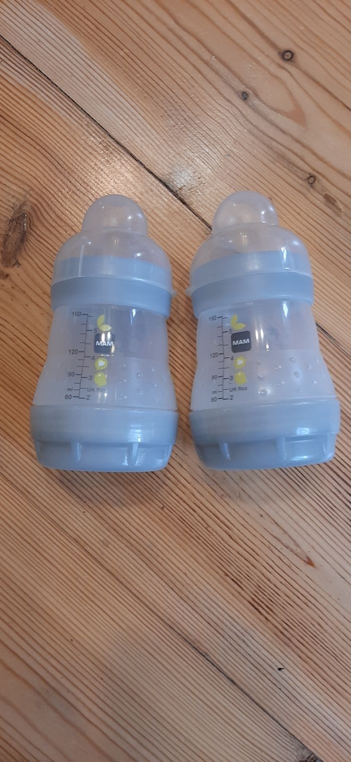 2 petits biberons marque MAM servis pour 2 enfants. État très correct. Vendus sans tétines