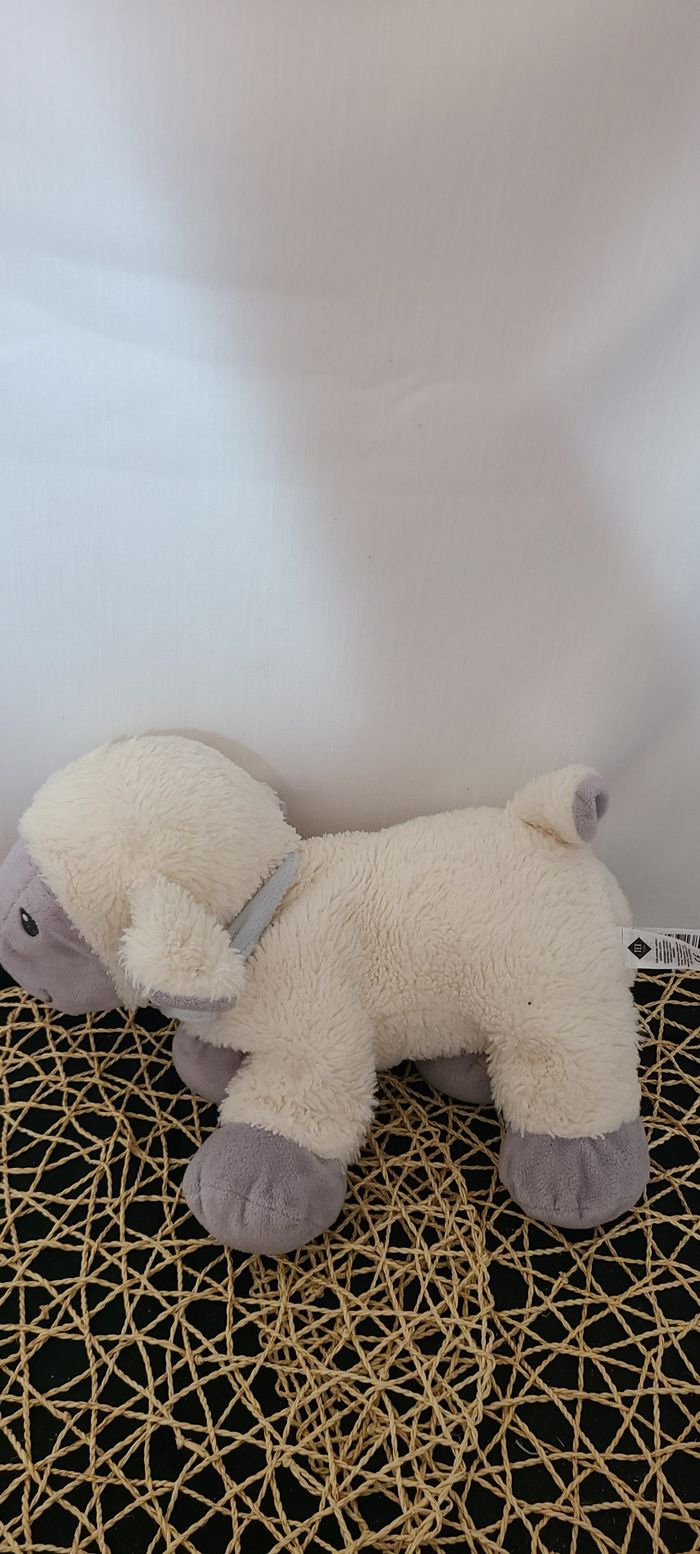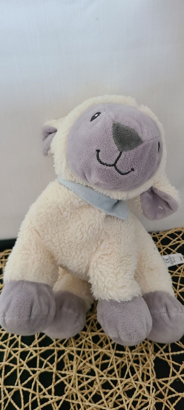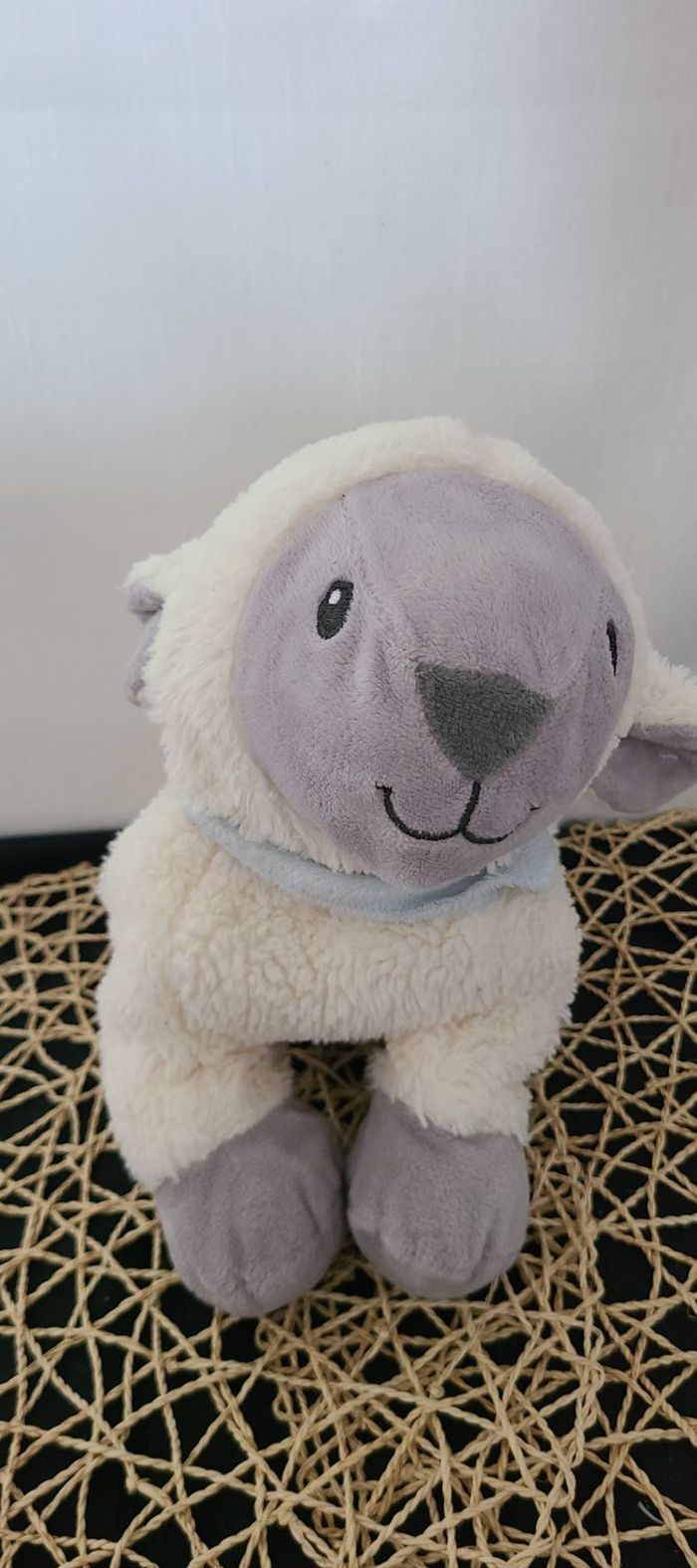 Peluche mouton TEX BABY blanc gris bandana bleu ciel 30 cm - photo numéro 1