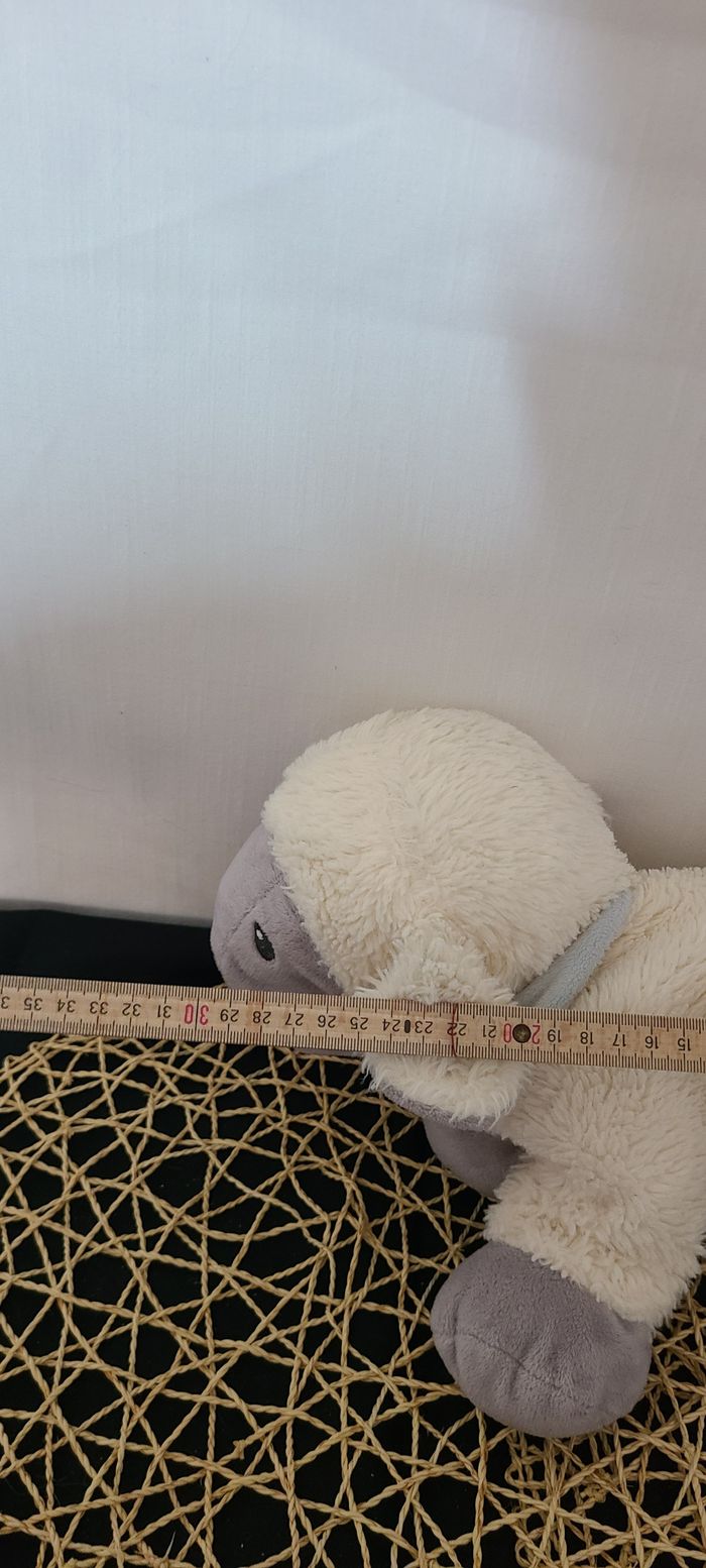 Peluche mouton TEX BABY blanc gris bandana bleu ciel 30 cm - photo numéro 5
